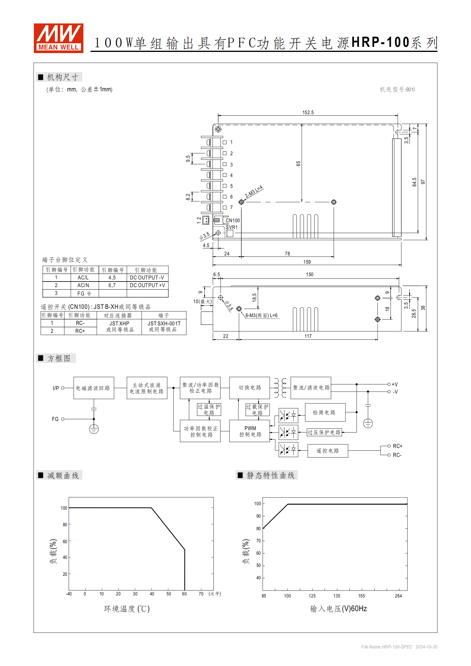 型號(hào)系列:HRP-100,包含多個(gè)輸出電壓版本: