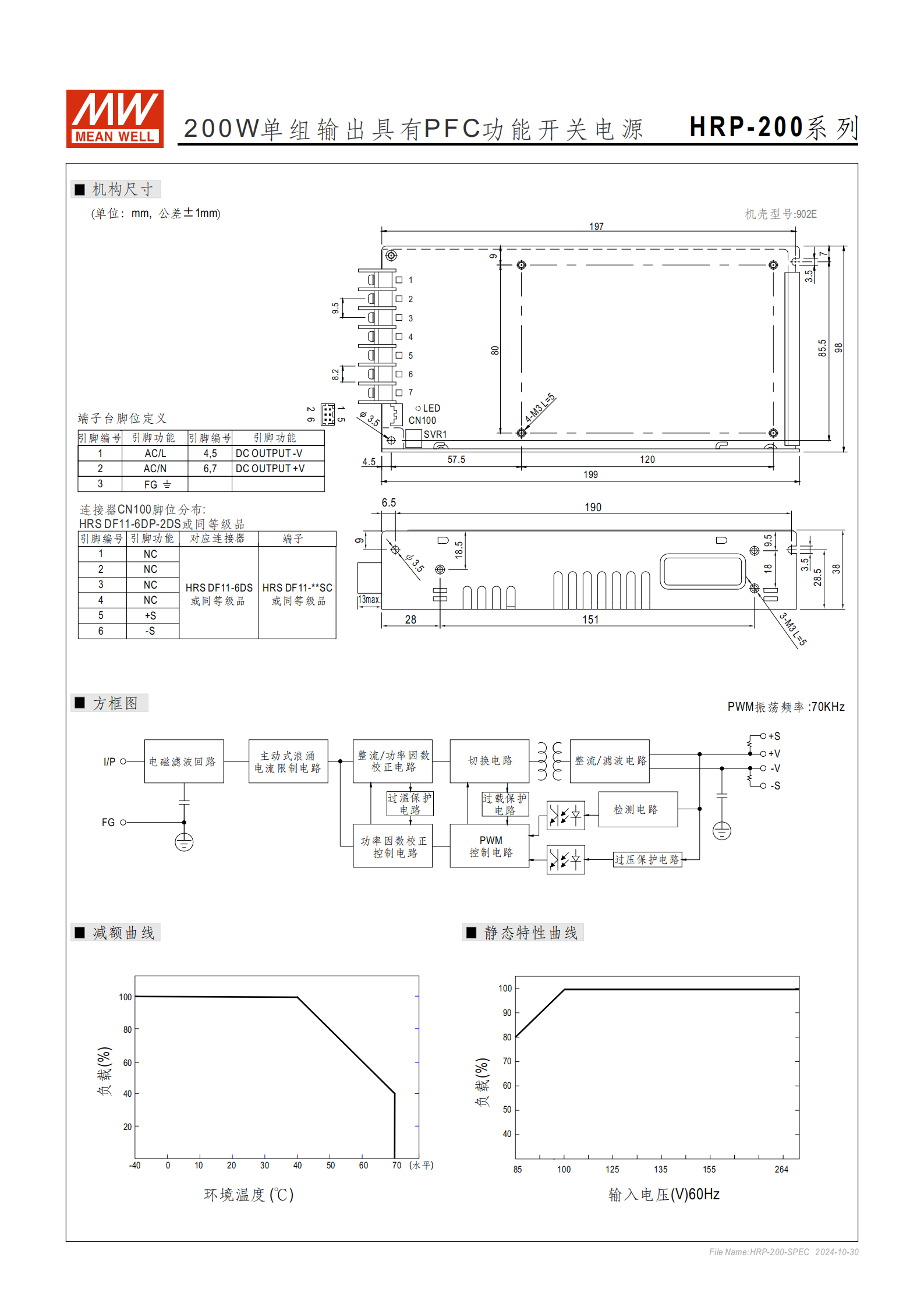 | HRP-200-15 | 15V | 13.4A | 201W | 13.5~18V | ±1.0% | 150mVp-p |