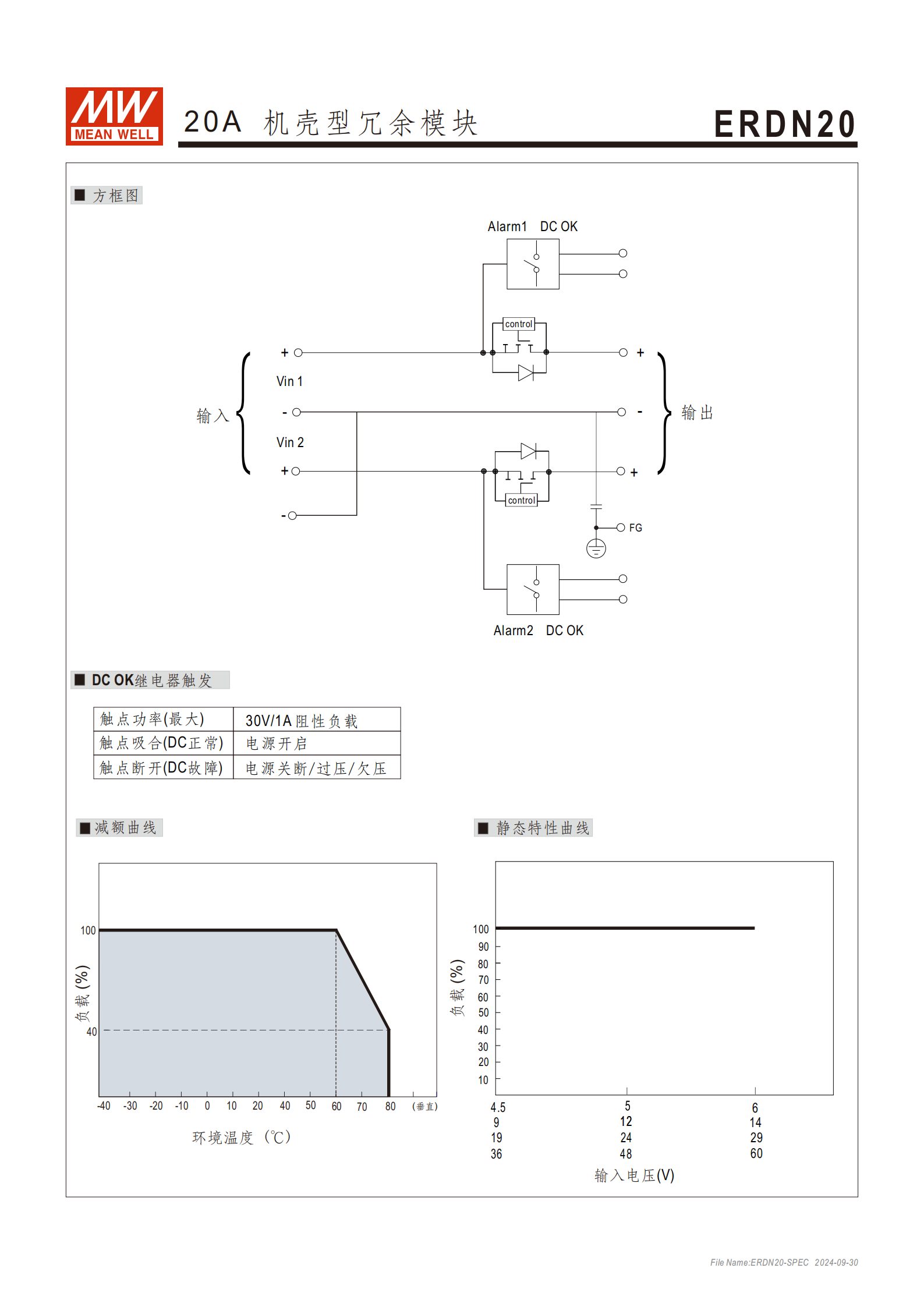 輸入電壓監(jiān)控:DC OK 信號(hào)(繼電器觸點(diǎn))