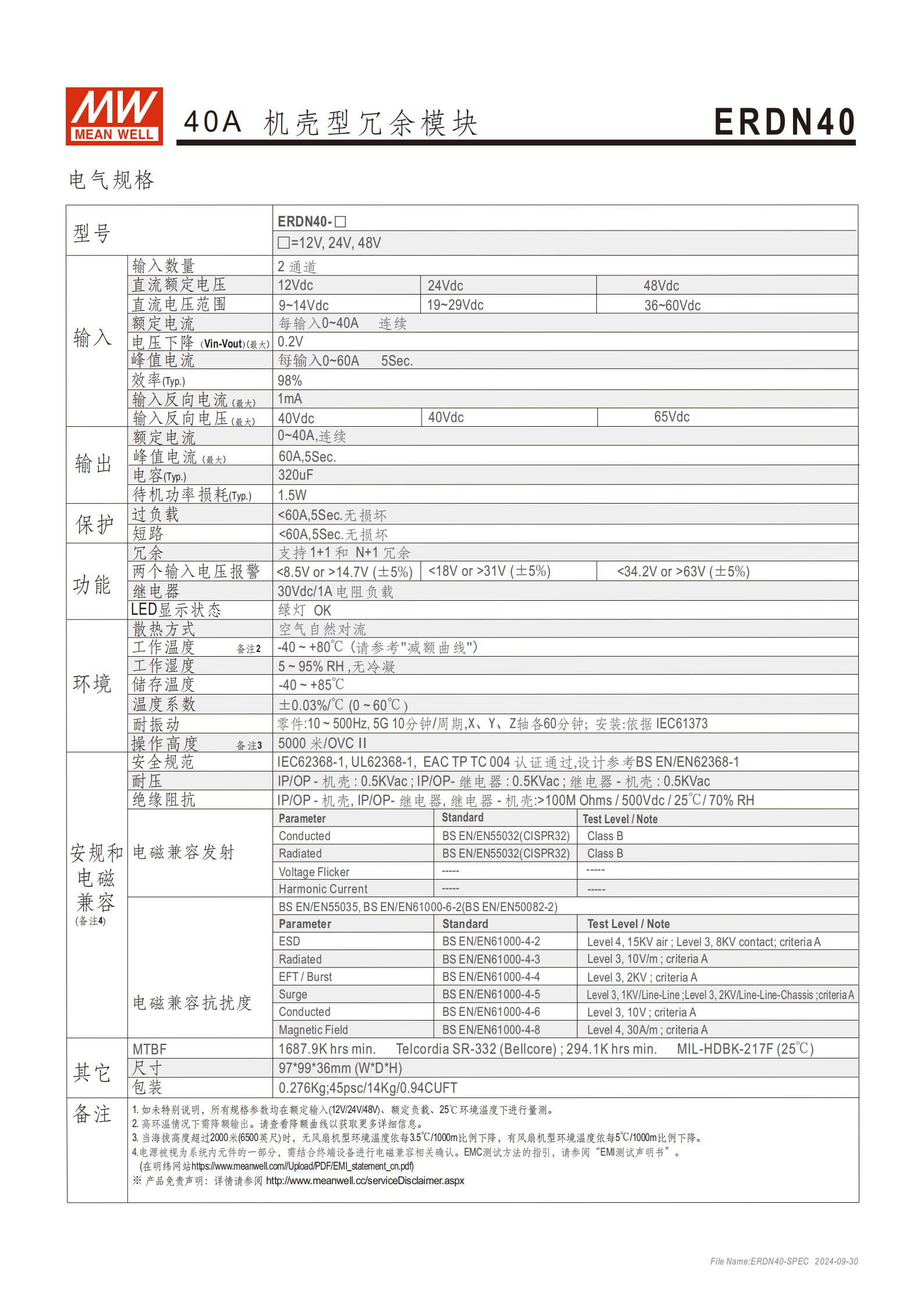 問(wèn)題 1:ERDN40 冗余模塊的核心電氣性能參數(shù)(輸入輸出、保護(hù)功能)是什么?