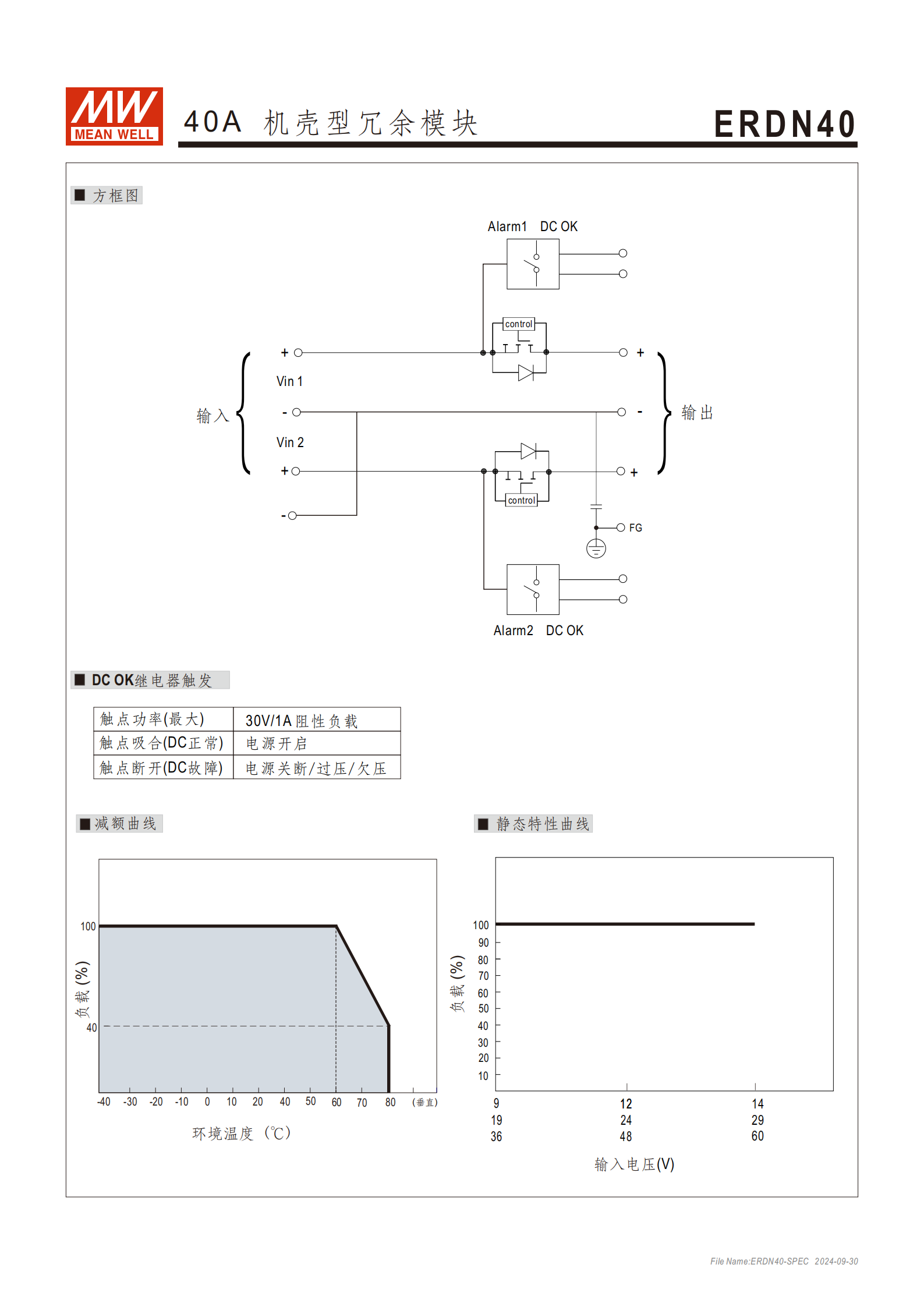 繼電器:30Vdc/1A 電阻負(fù)載,內(nèi)置兩路 DC OK 繼電器觸點(diǎn)