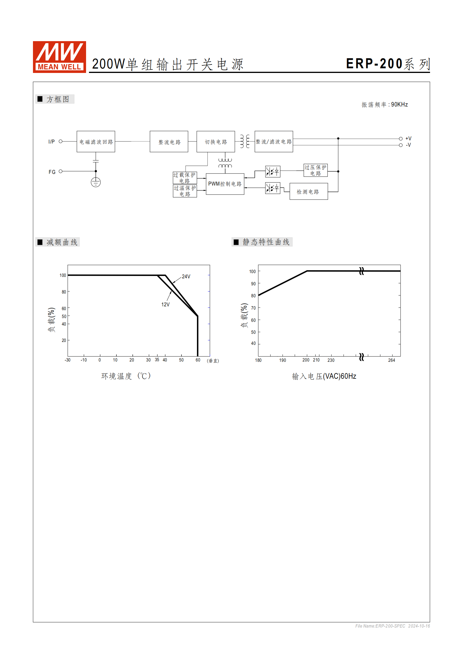 寬輸入范圍:支持 180~264VAC 交流輸入,并能承受 300VAC浪涌輸入5秒。