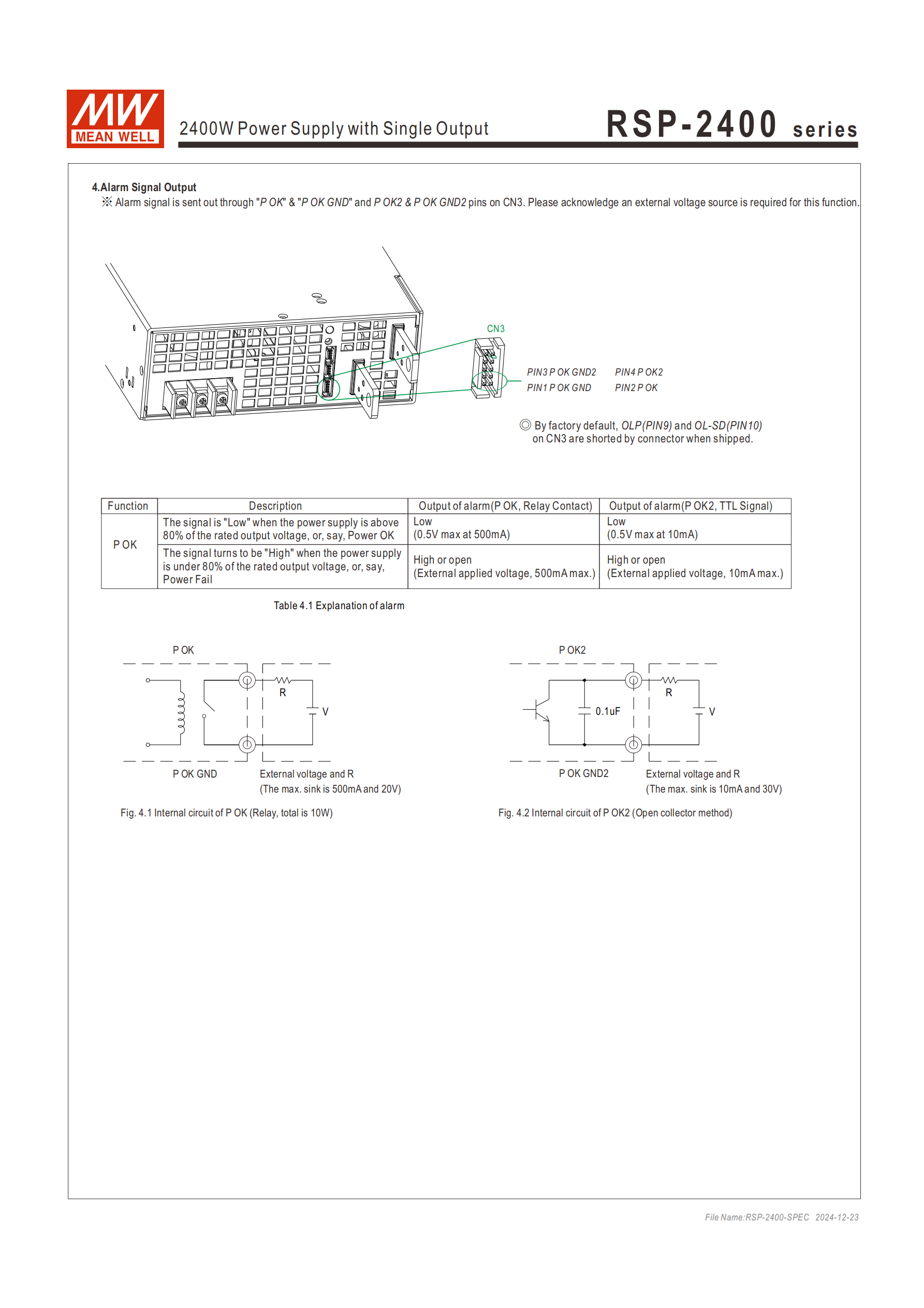 通過 CN3 的 P OK/P OK GND(繼電器觸發(fā))和 P OK2/P OK GND2(TTL 信號(hào))輸出