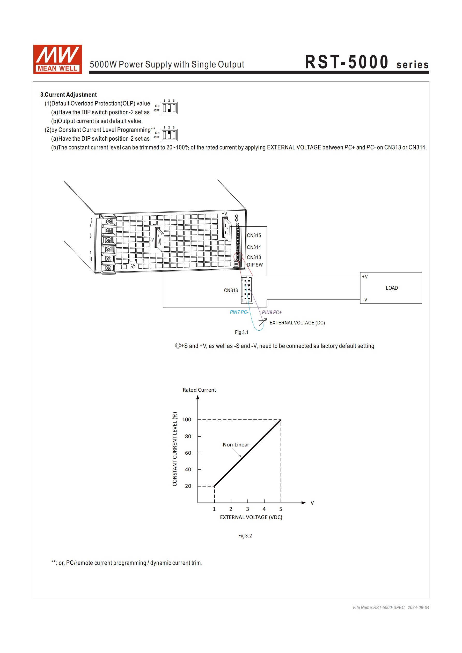 恒流值調(diào)整:通過外部電壓(CN313/CN314 的 PC + 與 PC - 間,0~5VDC 對應(yīng) 20~100% 額定電流)