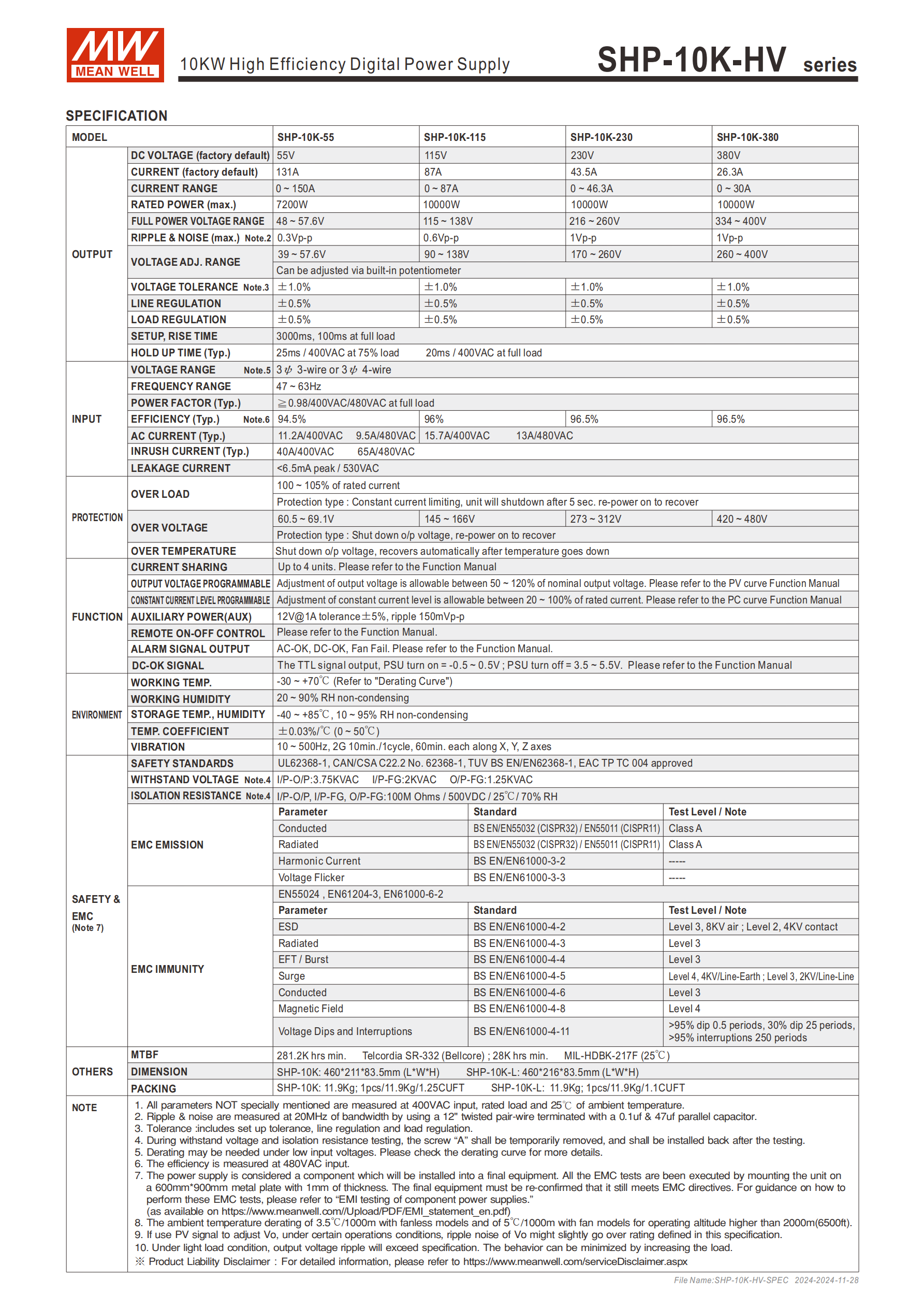 | SHP-10K-55 | 55V | 131A | 0~150A | 7200W | 48~57.6V | 0.3Vp-p |