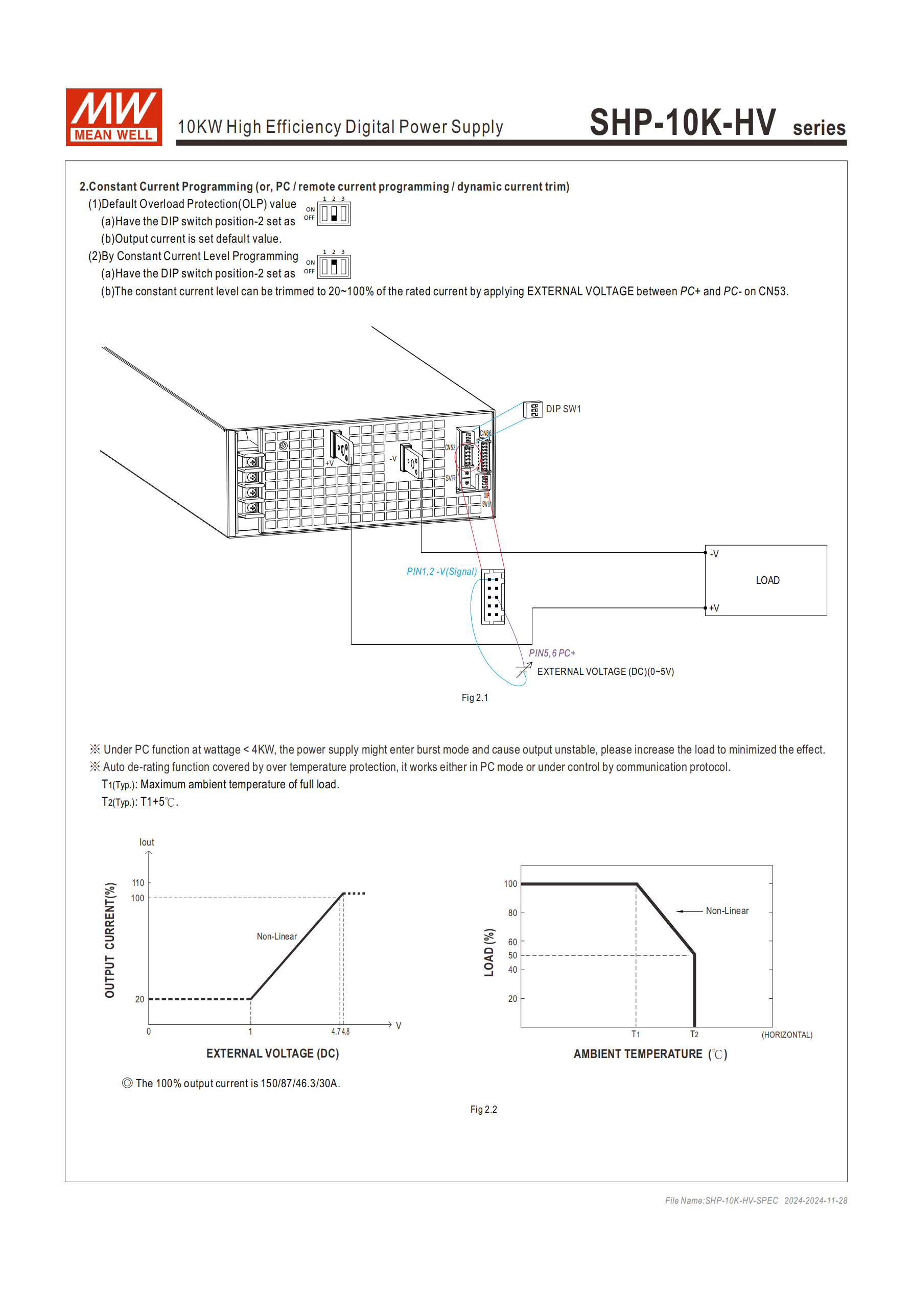 | 恒流值編程(PC) | 20~100% 額定輸出電流 | CN53 的 PC+/PC - 施加 0~5V 外部電壓 |