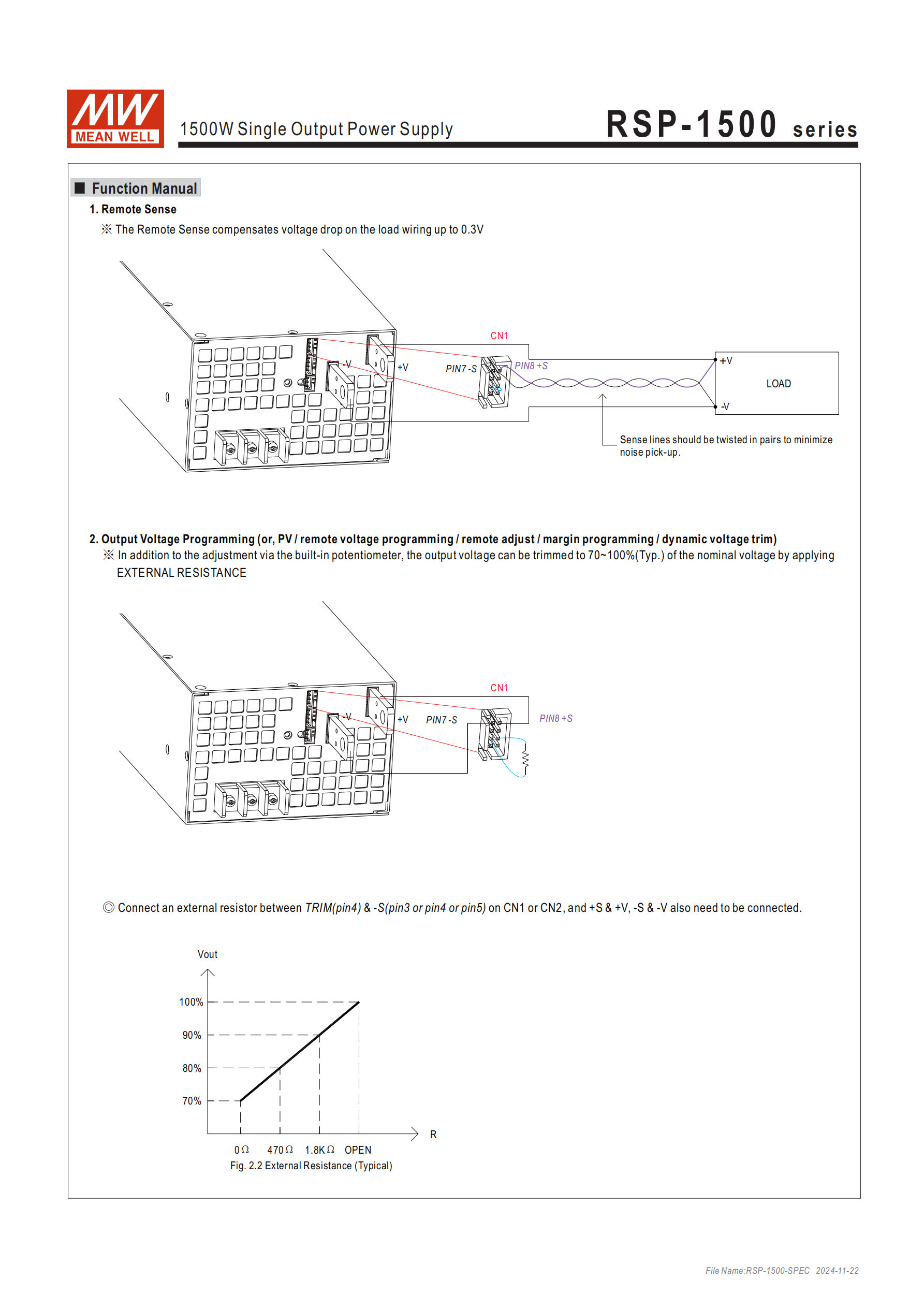 問題 2:RSP-1500 系列的輸出電壓調(diào)整方式有哪些?不同機型的調(diào)整范圍是否一致?