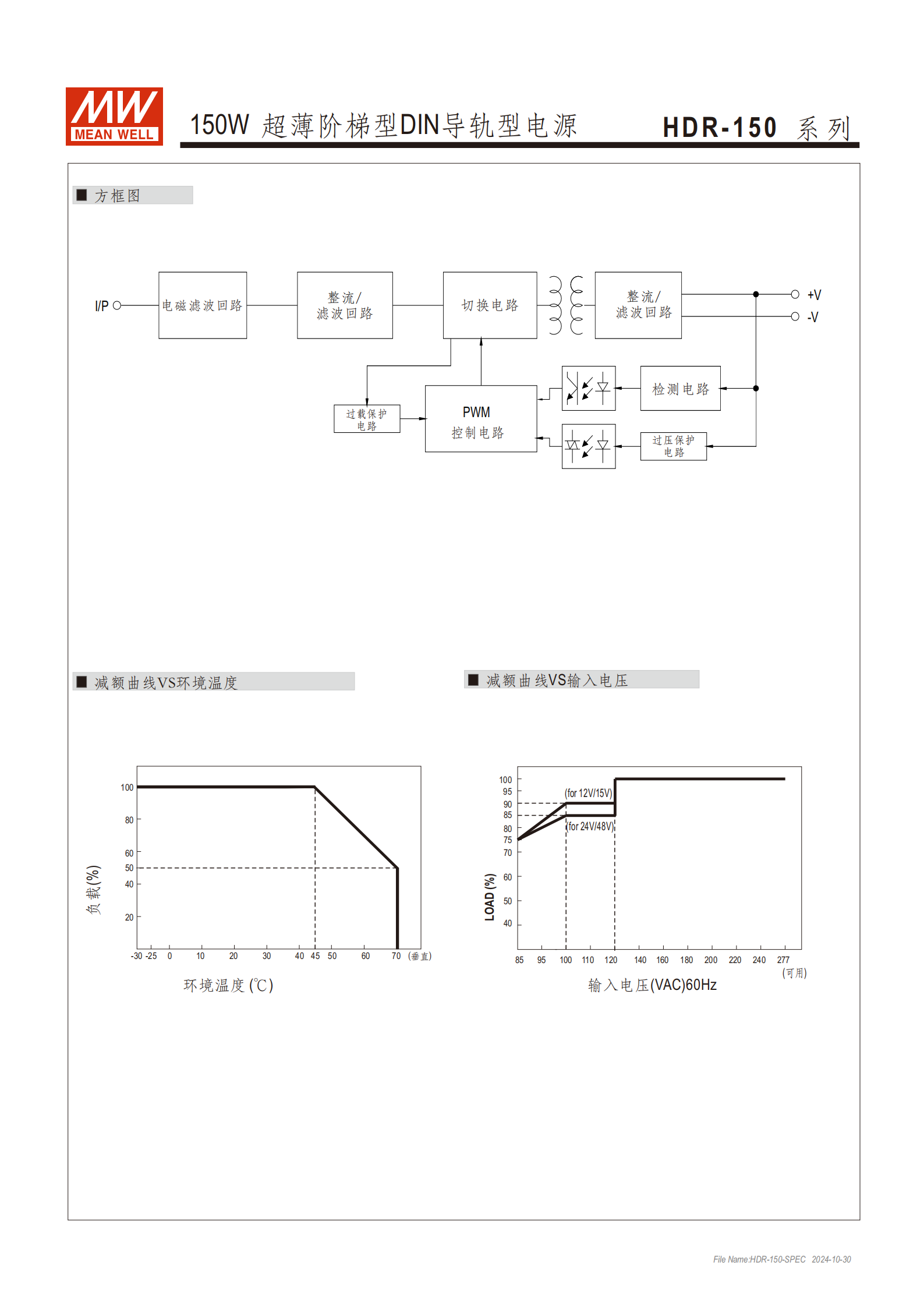 問題 2:HDR-150 系列電源的輸入輸出關(guān)鍵參數(shù)有哪些,核心保護(hù)功能是什么?