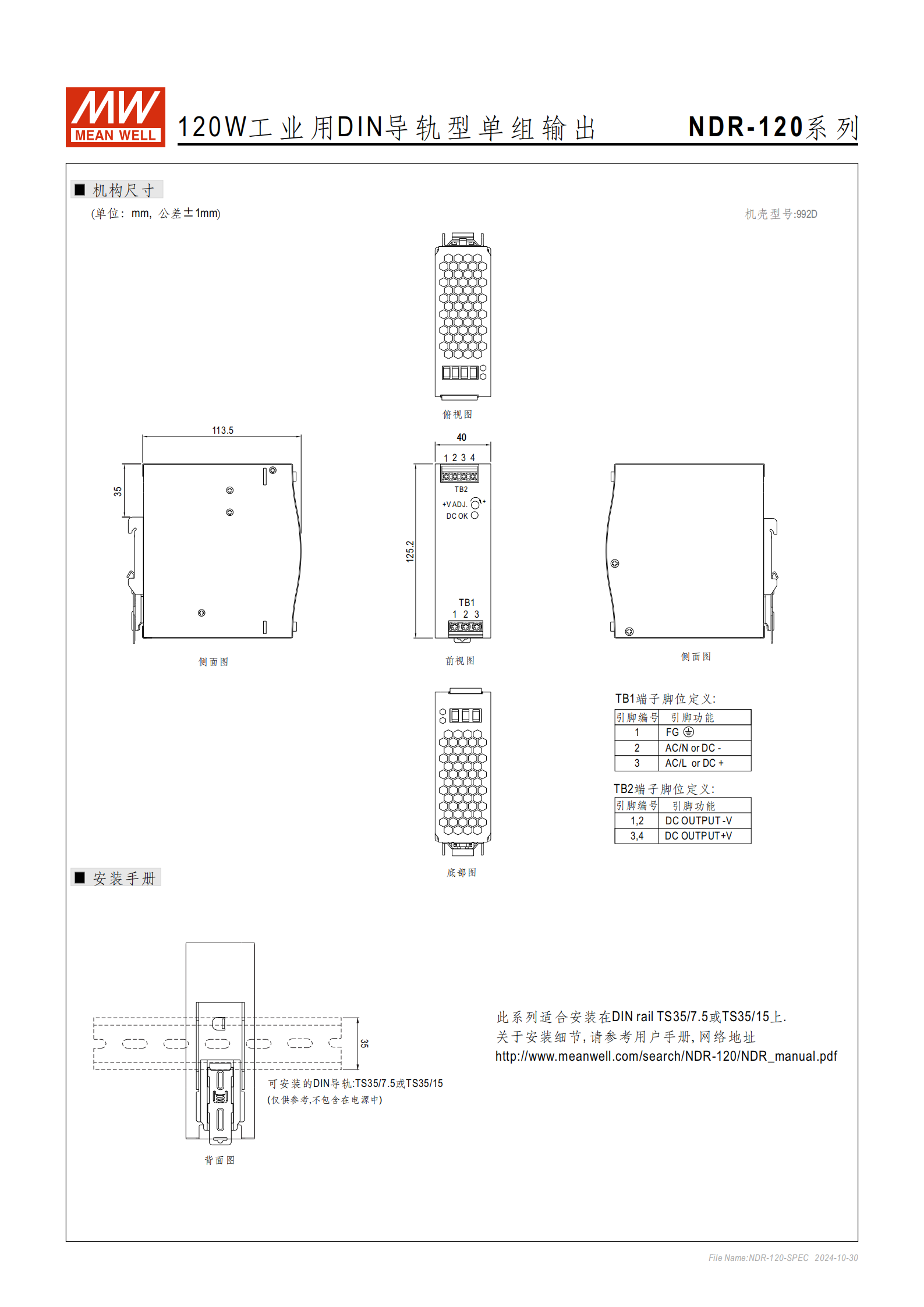 品牌與系列:MEAN WELL(明緯)NDR-120 系列