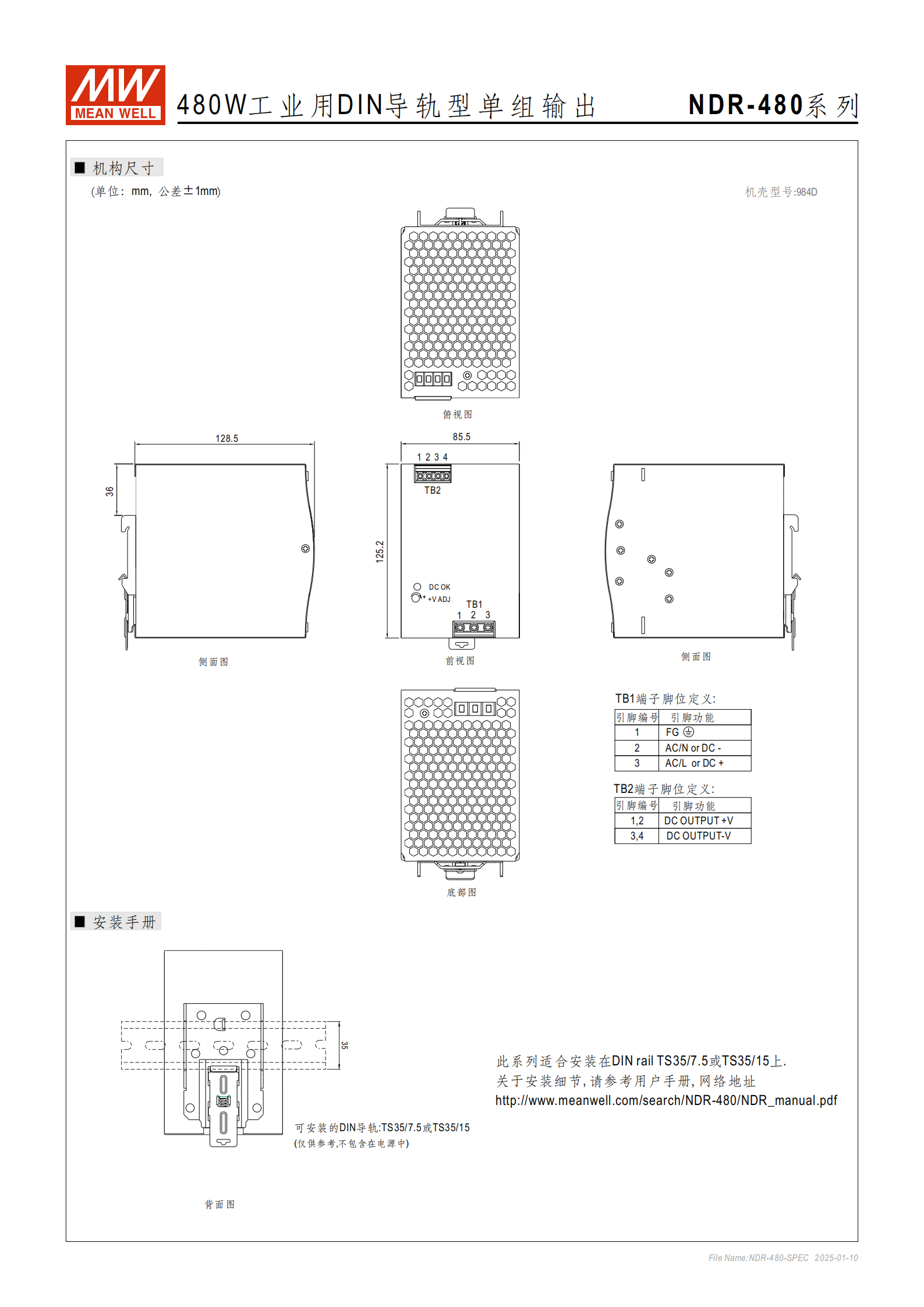 品牌與系列:MEAN WELL(明緯) NDR-480 系列,定位工業(yè)級 DIN 導(dǎo)軌型電源