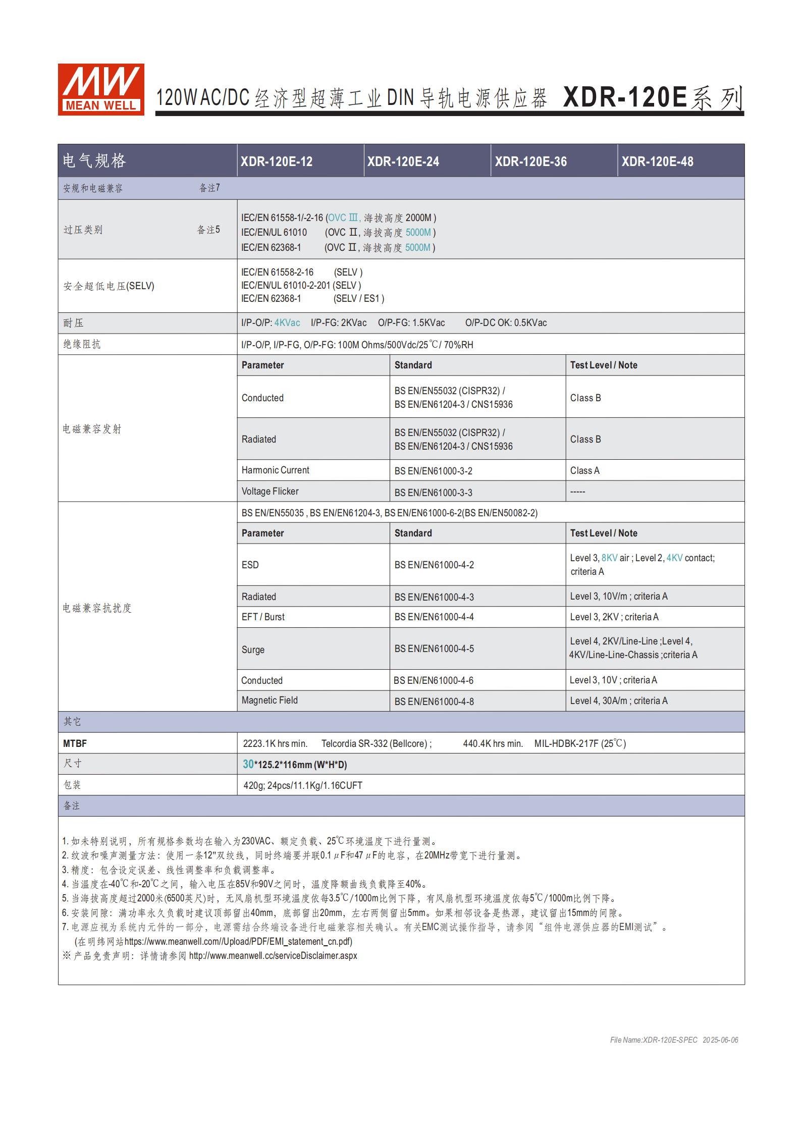 | 類別 | 具體參數(shù) | XDR-120E-12 | XDR-120E-24 | XDR-120E-36 | XDR-120E-48 |