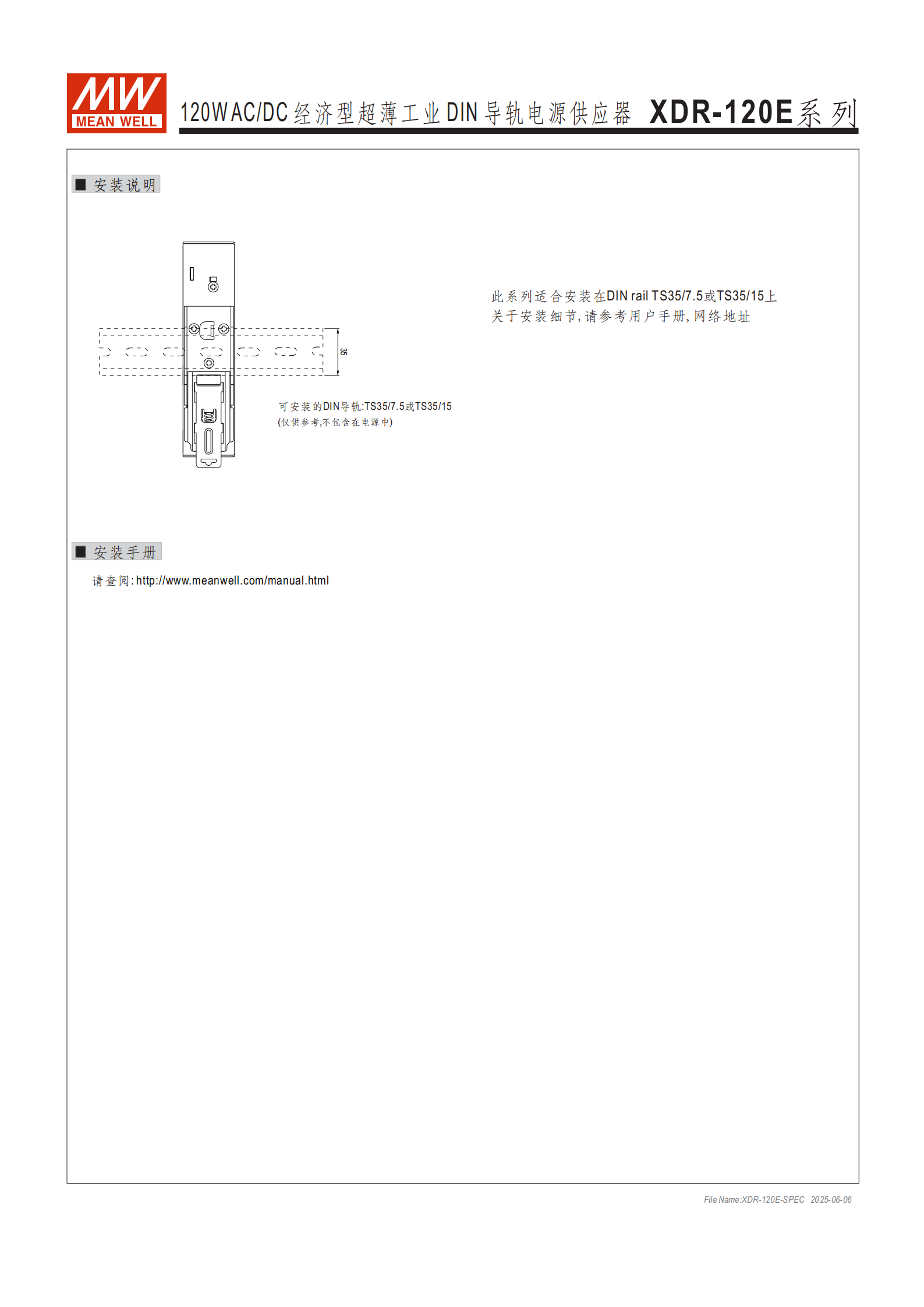 XDR-120E 系列是120W AC/DC 經(jīng)濟(jì)型超薄工業(yè) DIN 導(dǎo)軌電源供應(yīng)器,具備30mm 超薄寬度、85~264Vac 超寬輸入、91% 最高效率及0.6W~1W 空載功耗,輸出電壓涵蓋 12V/24V/36V/48V,支持 **-40~+70℃寬工作溫度范圍 **(+50℃滿載需減額),擁有短路 / 過載 / 過壓 / 過溫全面保護(hù)、OVC Ⅲ 過壓類別及 DC OK 繼電器觸點(diǎn)功能,通過全球多領(lǐng)域安規(guī)認(rèn)證,可安裝于 TS-35/7.5 或 15 DIN 導(dǎo)軌,提供3 年保固,廣泛應(yīng)用于工業(yè)控制系統(tǒng)、工廠自動(dòng)化等場(chǎng)景。