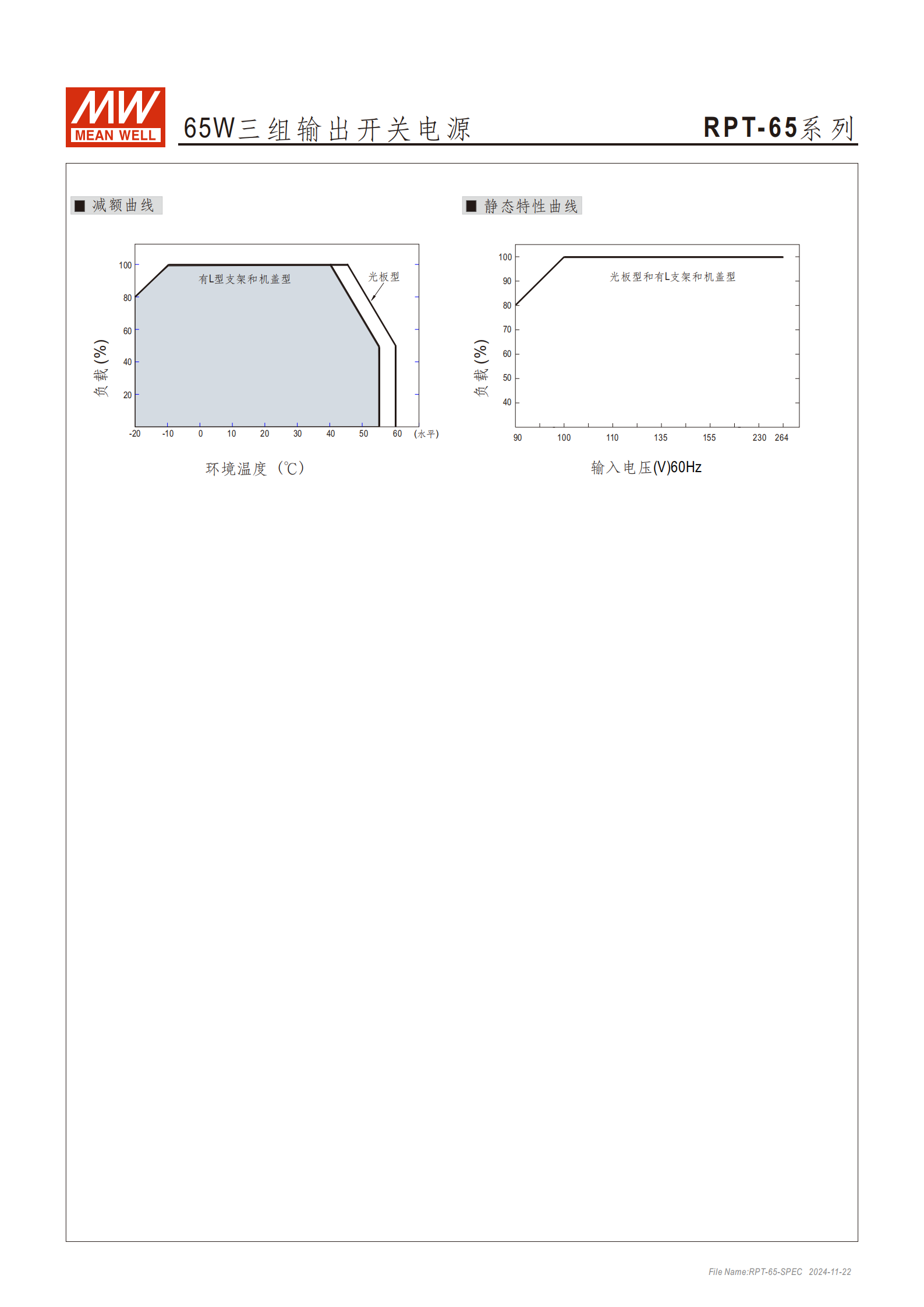 | 交流電流(Typ.) | 1.5A/115VAC、0.9A/230VAC(RPT-65E/F);1.5A/115VAC(RPT-65G) |
