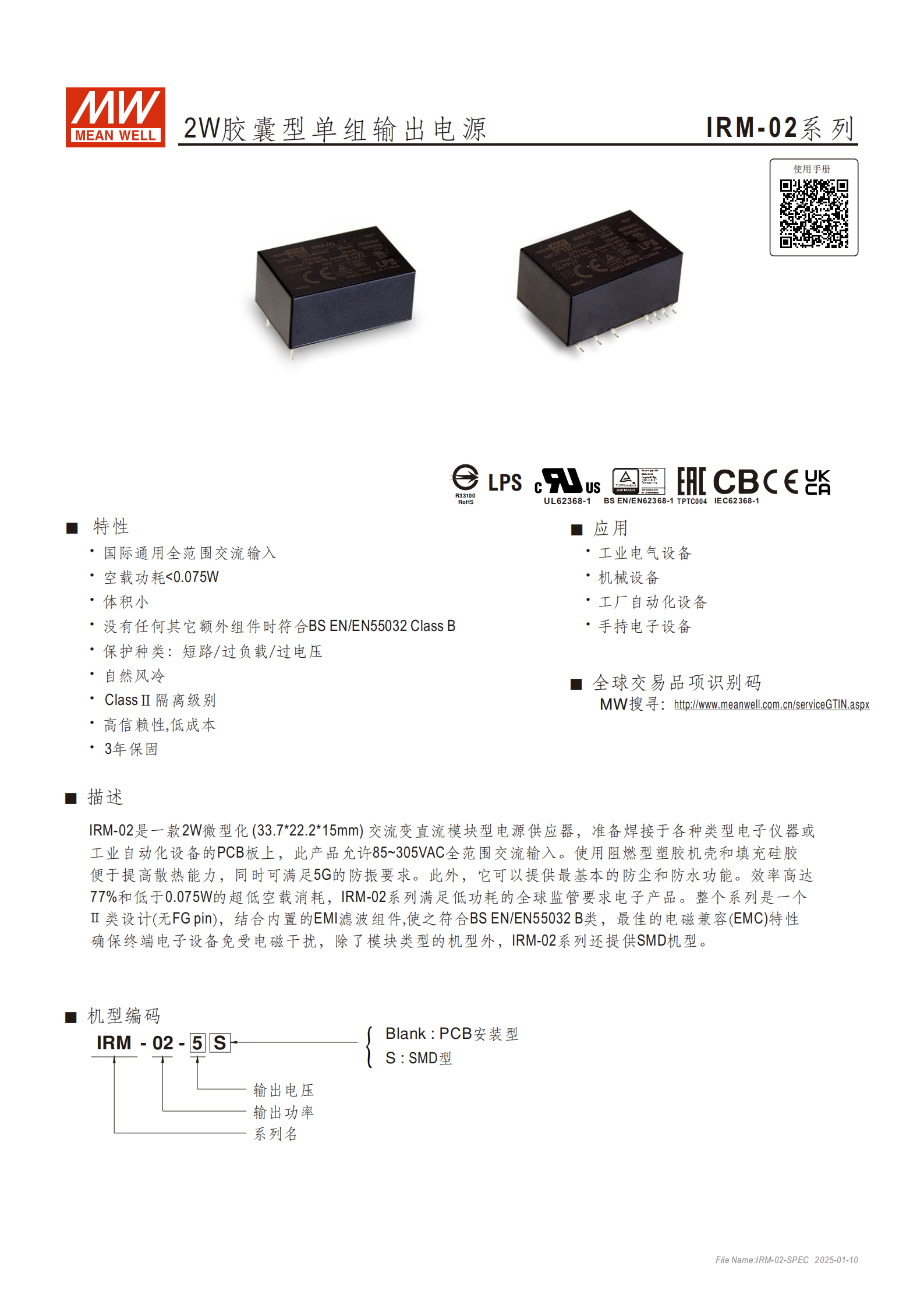 品牌與系列:MEAN WELL(明緯)IRM-02 系列