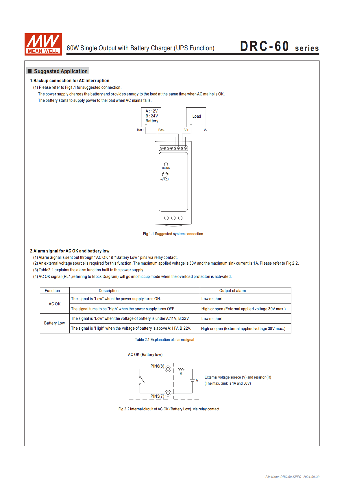 電池低壓:電壓低于 11V(DRC-60A)/22V(DRC-60B)時(shí)為 “低”,高于該值時(shí)為 “高”,最大吸入電流 1A
