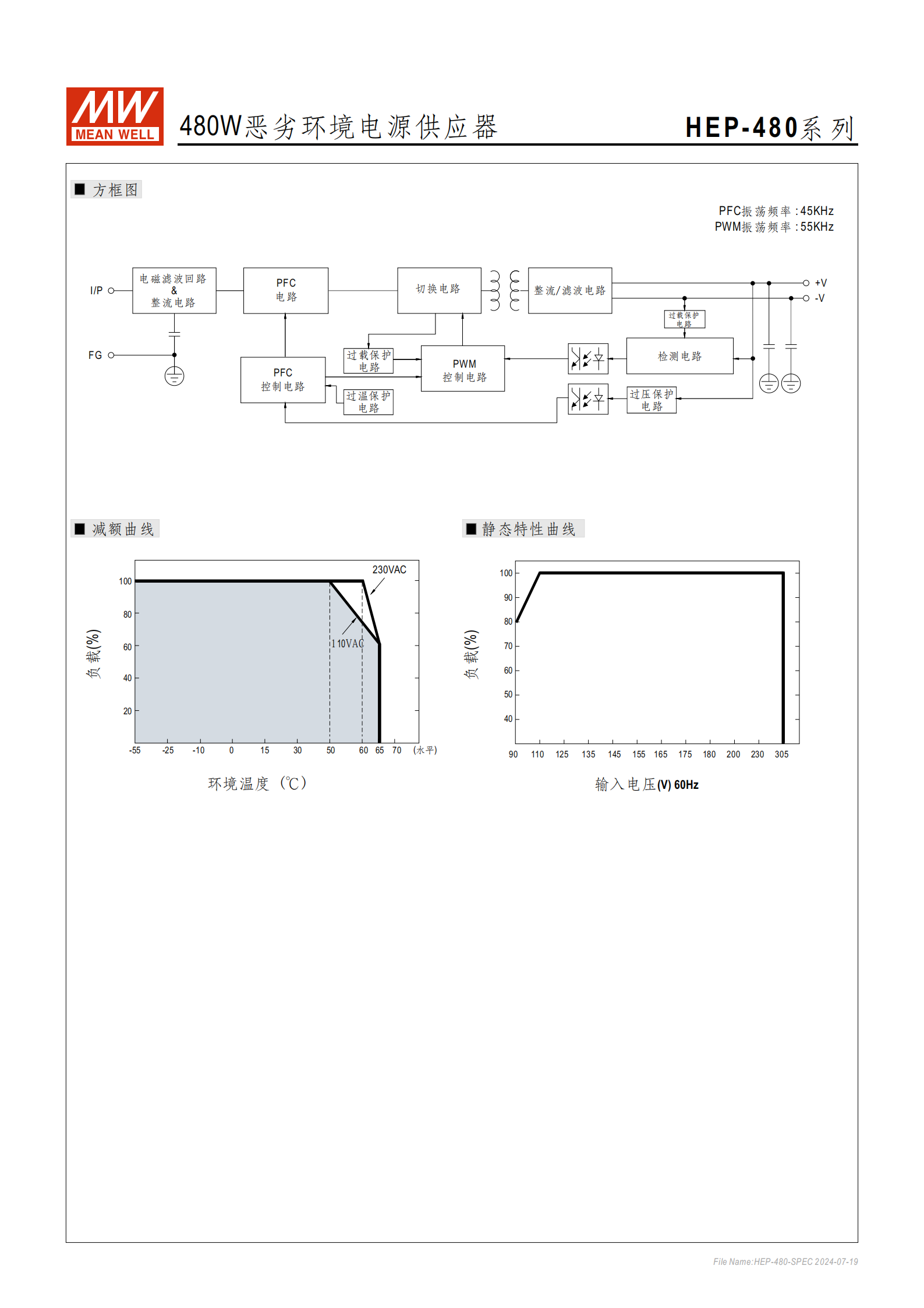 | HEP-480-24 | 24V | 20A | 480W | 20.4~25.2V | 10~20A | 200mVp-p | ±1.0% |
