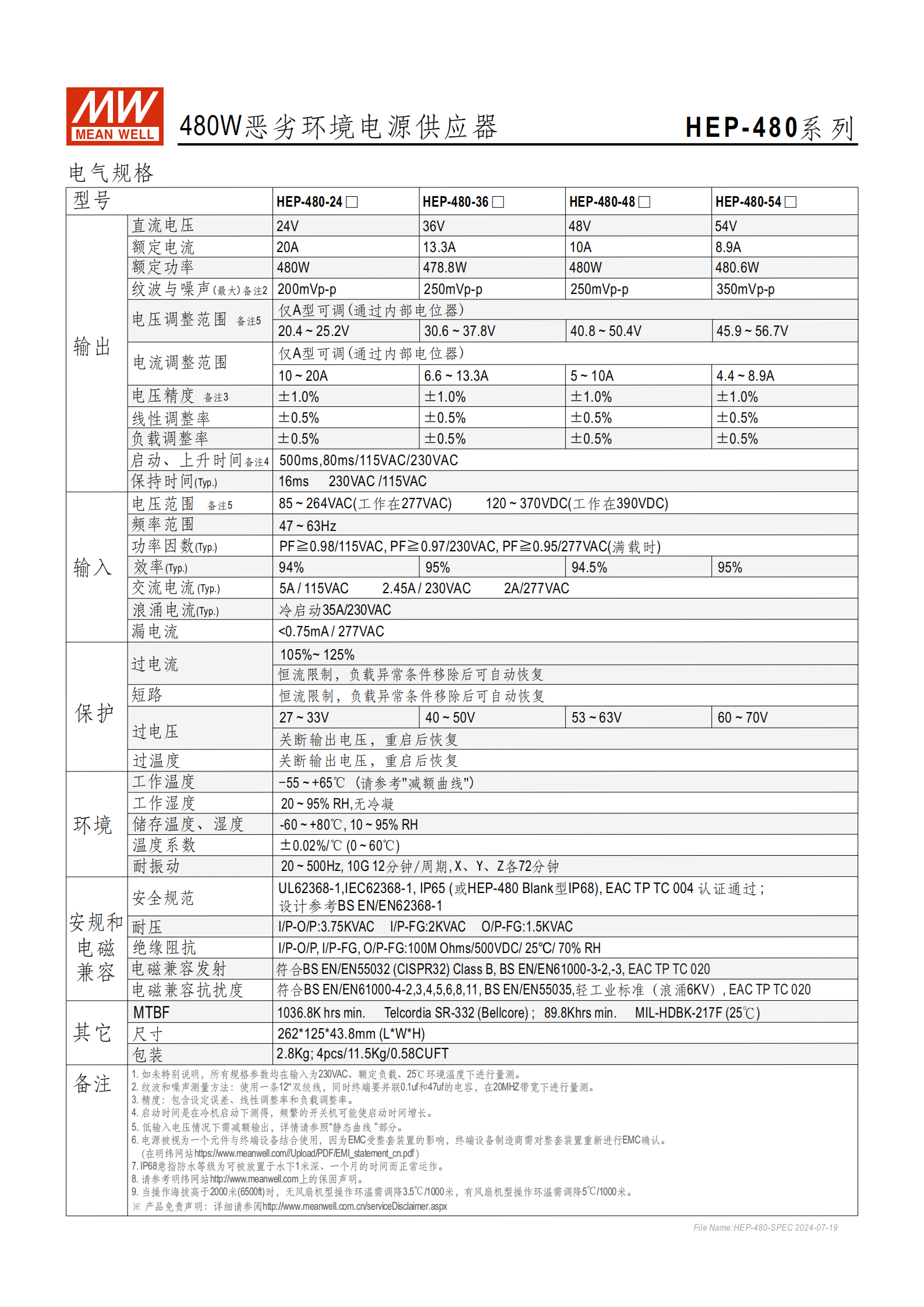 | HEP-480-54 | 54V | 8.9A | 480.6W | 45.9~56.7V |