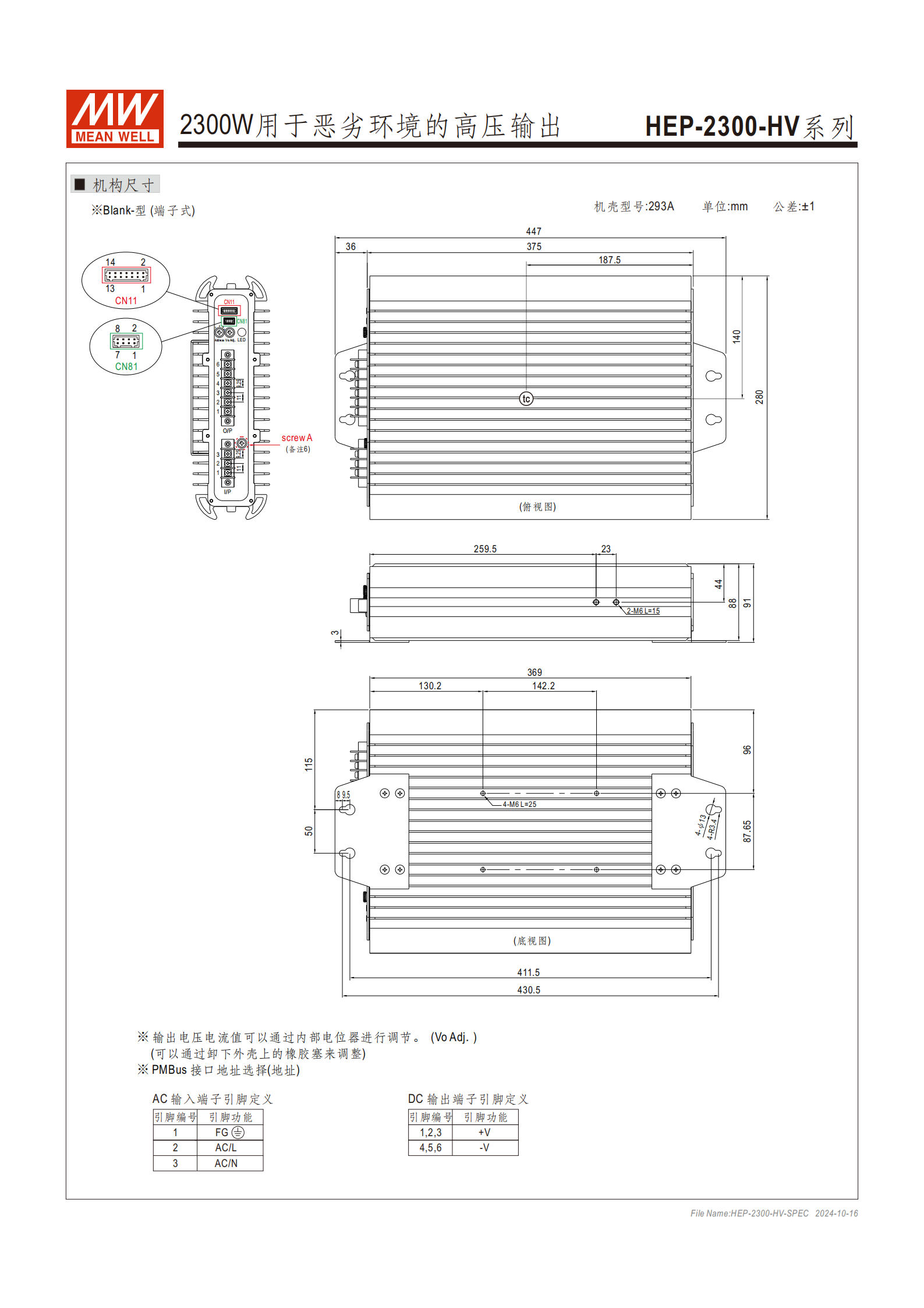 產(chǎn)品名稱:HEP-2300-HV 系列工業(yè) AC/DC 電源