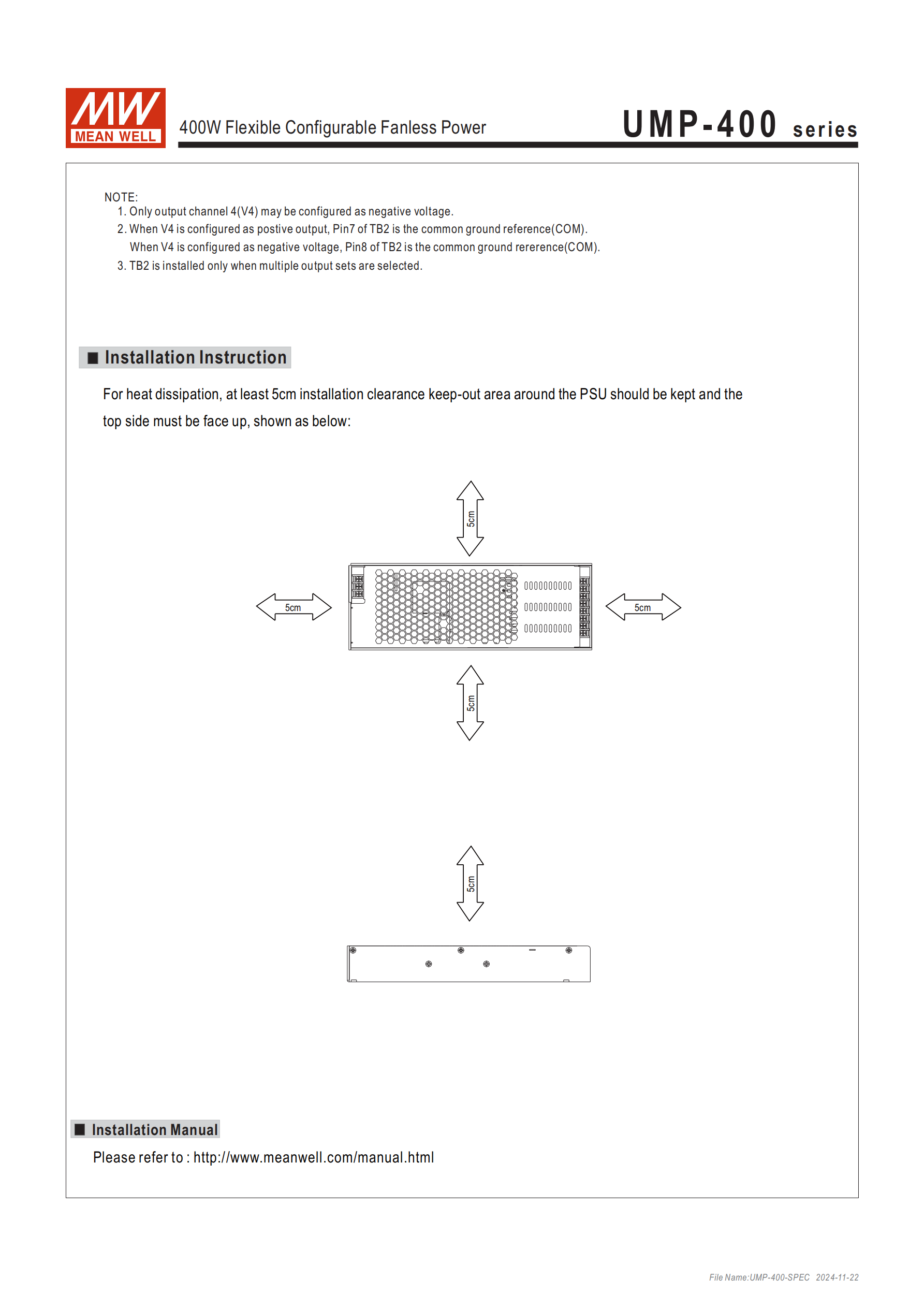 問題 2:UMP-400 系列電源在不同環(huán)境條件下的使用限制的是什么,安裝時(shí)需注意哪些關(guān)鍵要求?