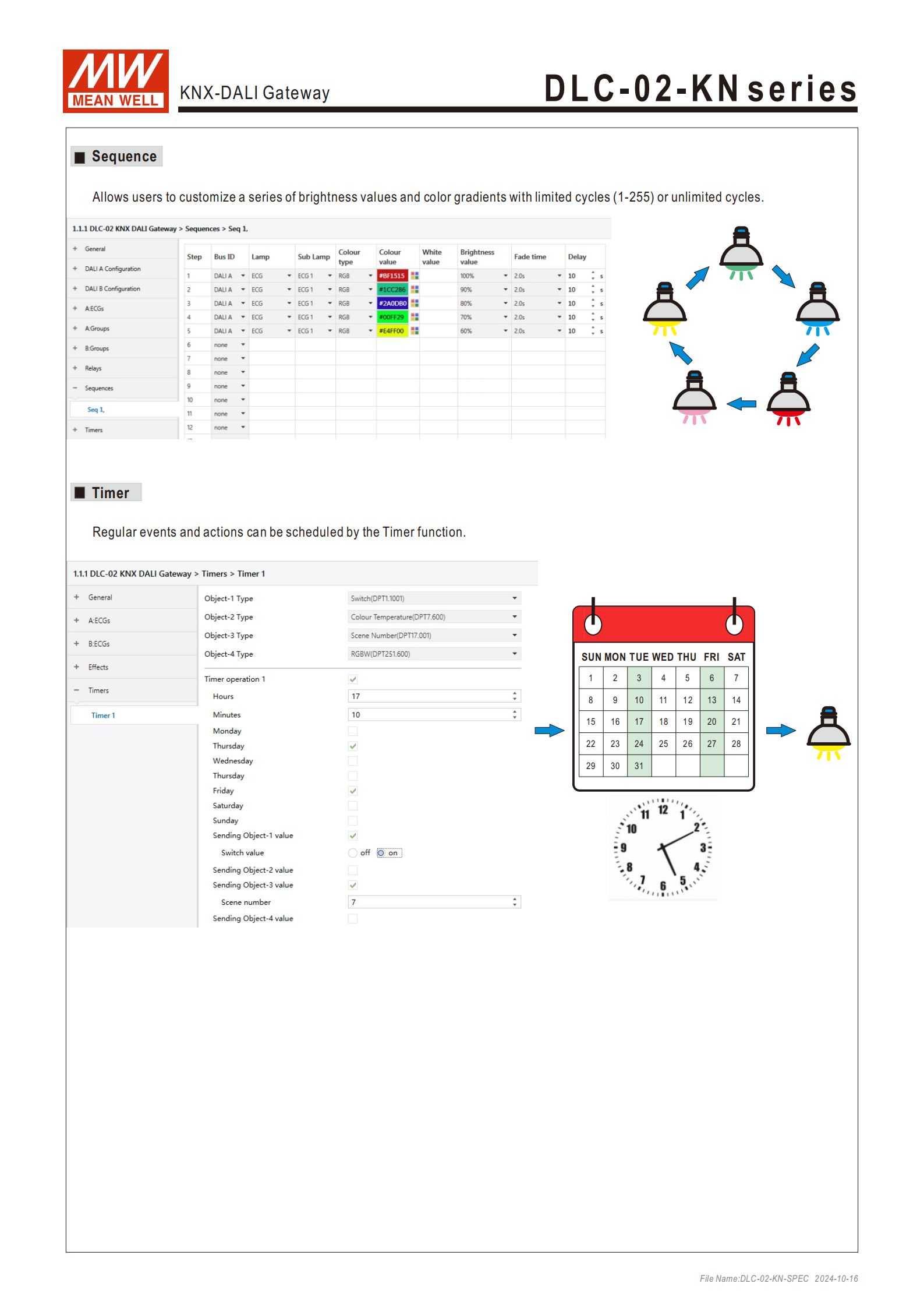 DLC-02-KN 系列是 MEAN WELL 推出的KNX-DALI 網(wǎng)關(guān),具備 2 個獨立 DALI 總線通道(內(nèi)置總線電源,每通道最大 250μA),可連接多達(dá) 128 個 DALI 設(shè)備(每通道 64 個),支持 DALI-2 多種設(shè)備類型,集成 4 路 250V/5A 繼電器,提供序列(最多 16 個,每序列 32 步)、定時器(最多 16 個,每個 6 種操作)等自定義功能,支持通過 ETS5/ETS6 軟件配置,適配辦公室、智能家居等多種照明場景,享有 5 年質(zhì)保,安裝便捷且具備節(jié)能的待機關(guān)閉功能。