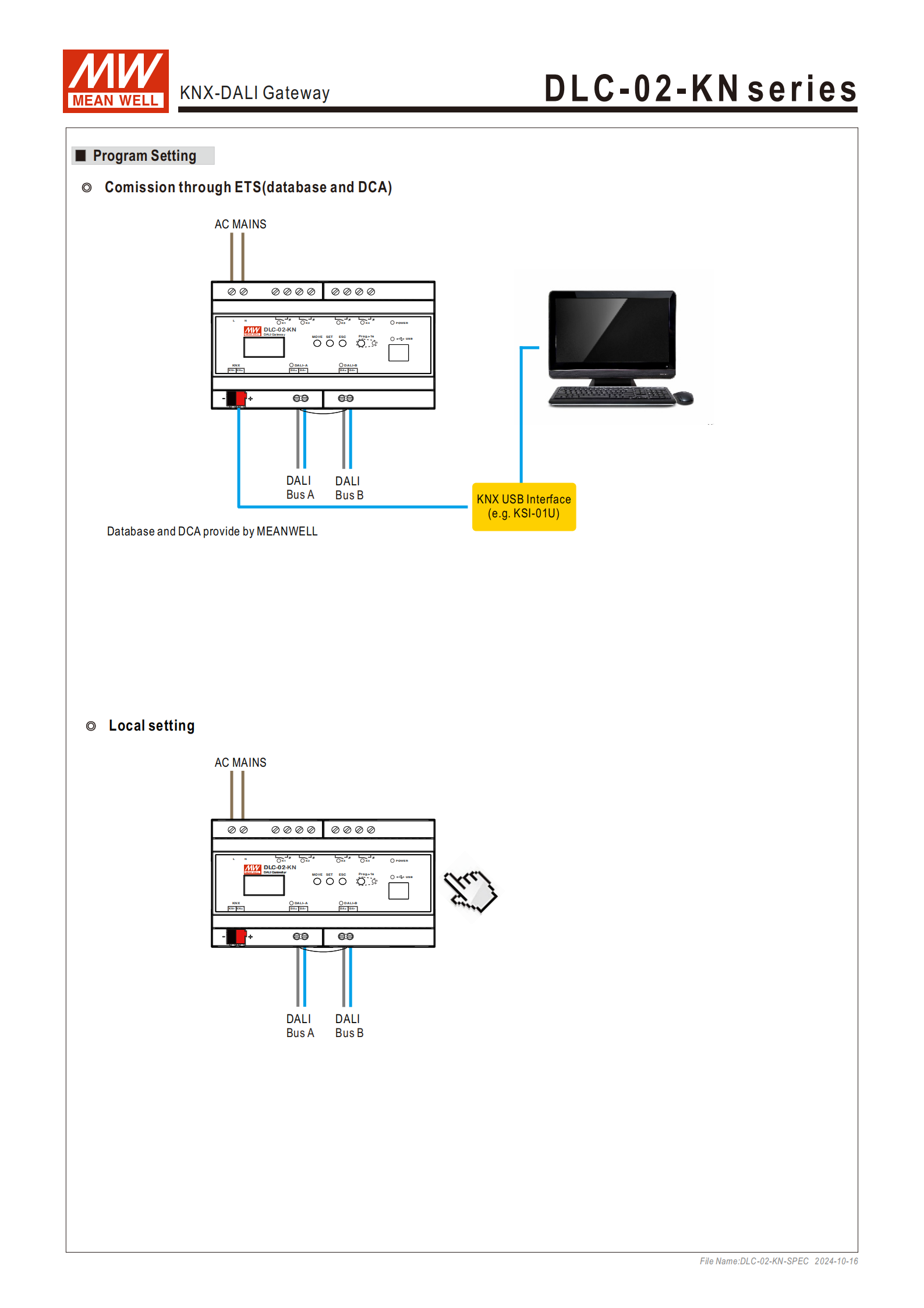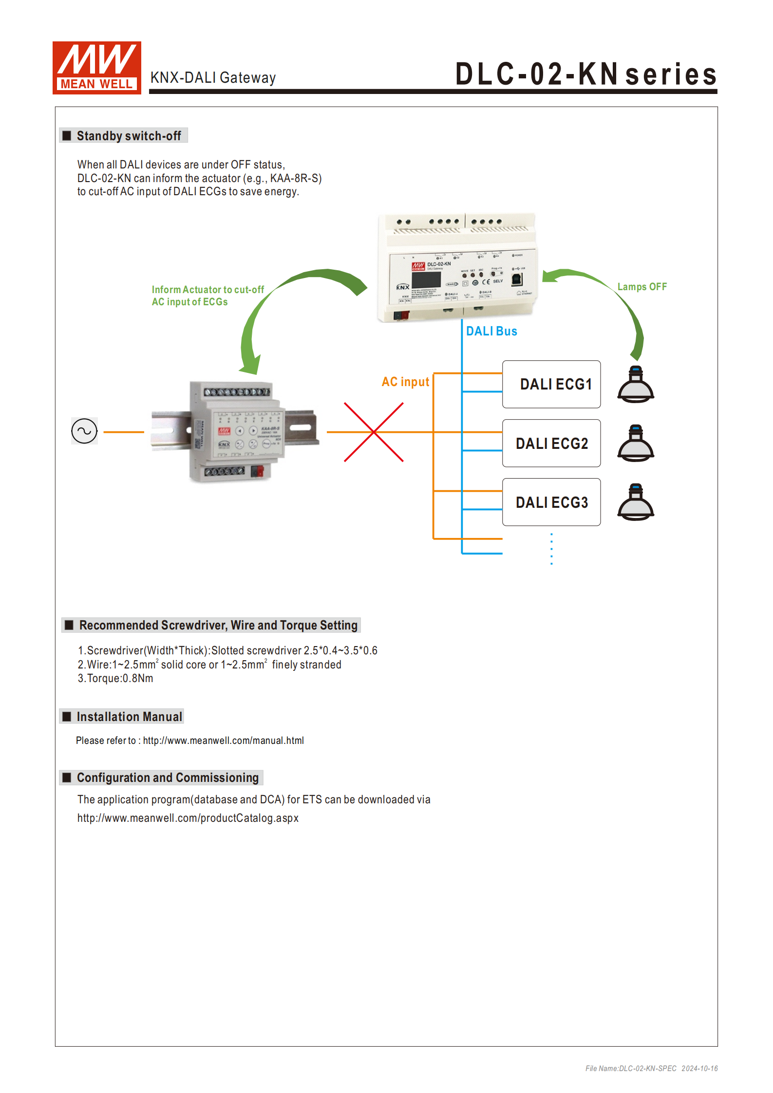 配置方式:通過 ETS5/ETS6 軟件進(jìn)行編程配置,需使用 MEAN WELL 提供的數(shù)據(jù)庫和 DCA 文件(可通過官網(wǎng)下載)。