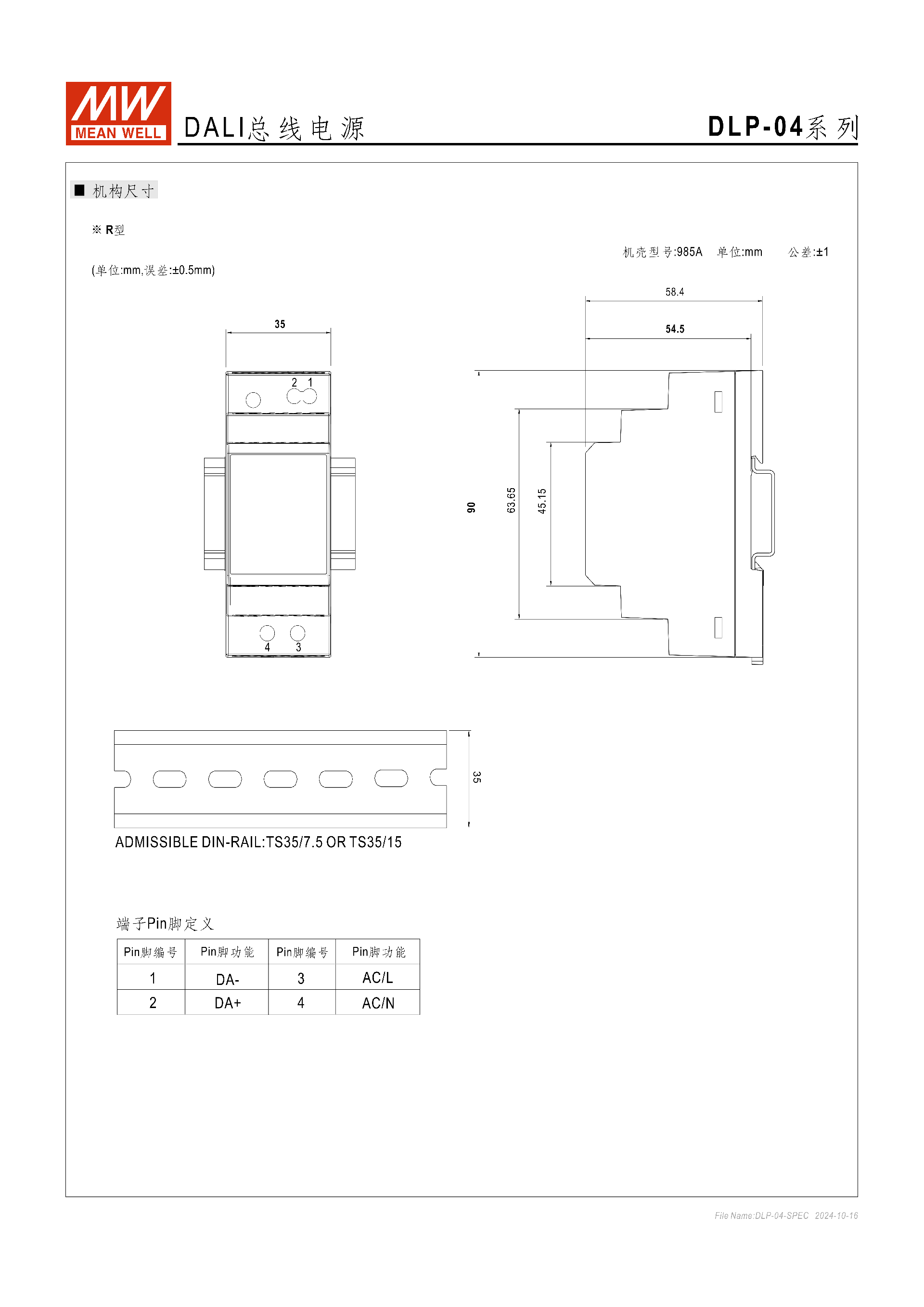 DLP-04R:可安裝于德規(guī)導軌 TS-35/7.5 或 15