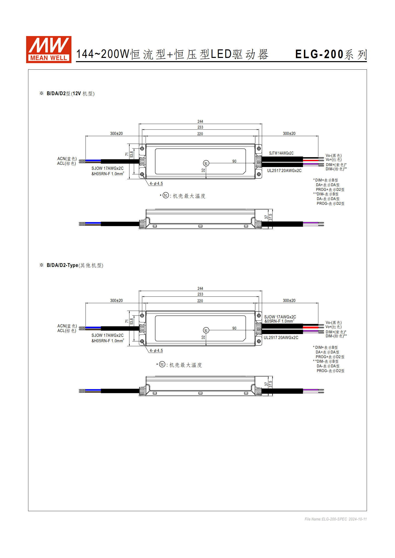 系列型號編碼為ELG-200-XX - 功能 - 輸入線型,核心功能選項(xiàng)區(qū)分如下,防護(hù)等級分IP65/IP67: