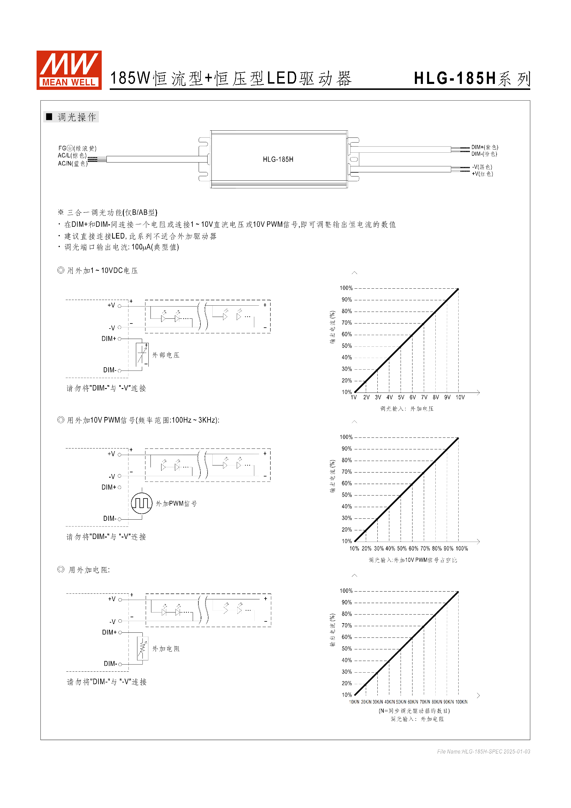 問題 2(調(diào)光操作):HLG-185H 系列的三合一調(diào)光功能僅哪些型號(hào)支持,具體有哪幾種調(diào)光方式,操作時(shí)有什么禁忌?