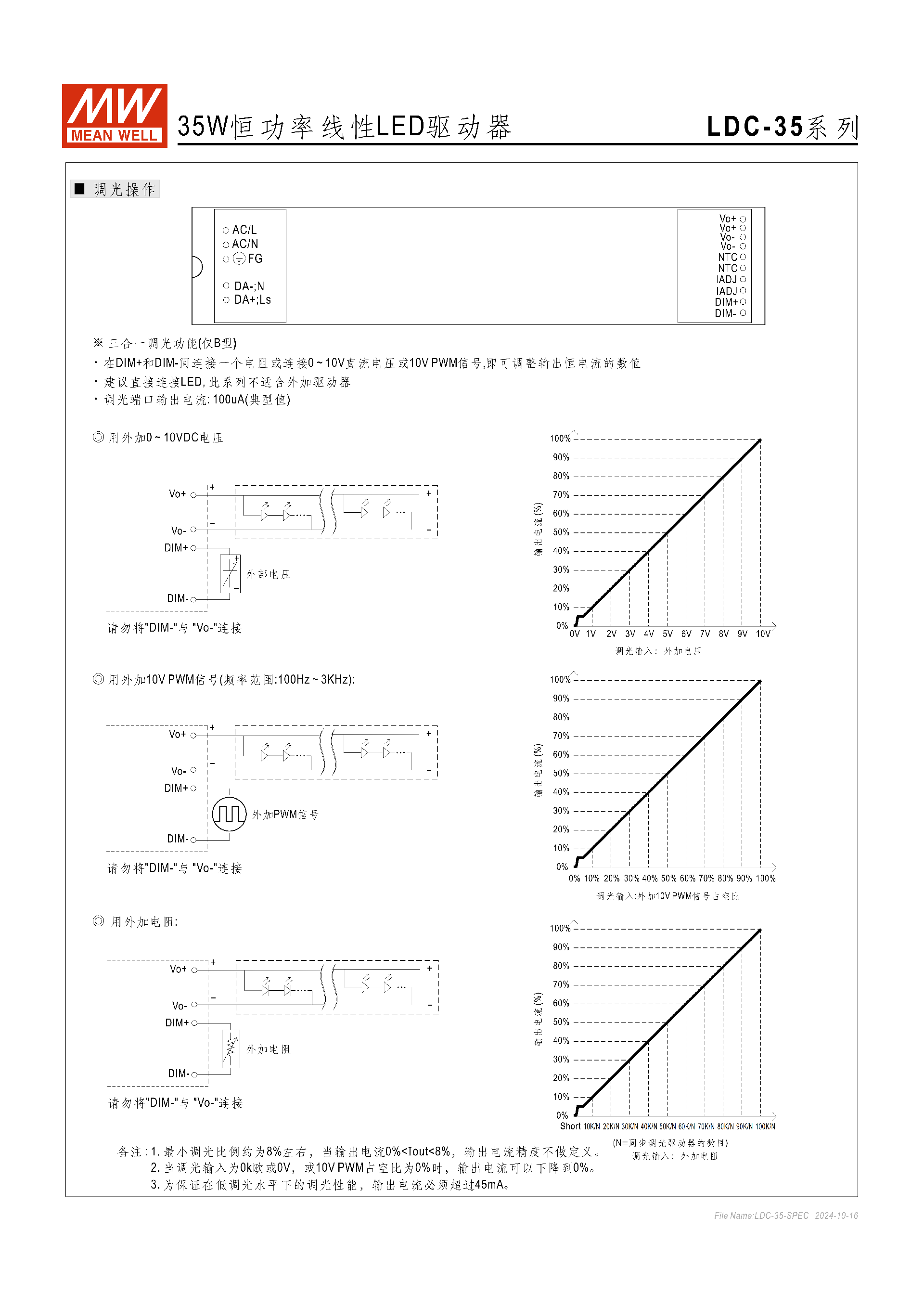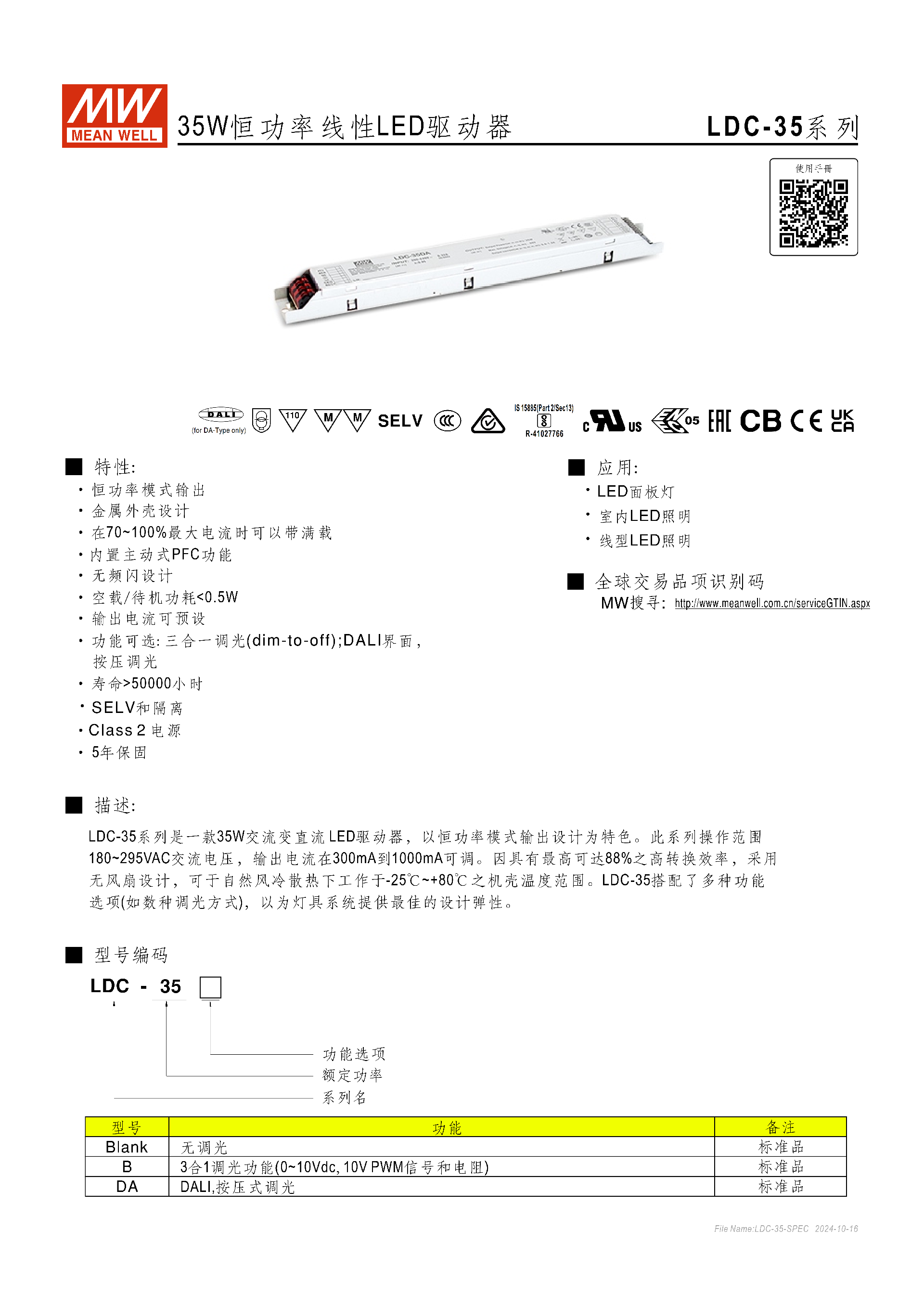 LDC-35 系列按調(diào)光功能分 3 類標準品,具體如下: