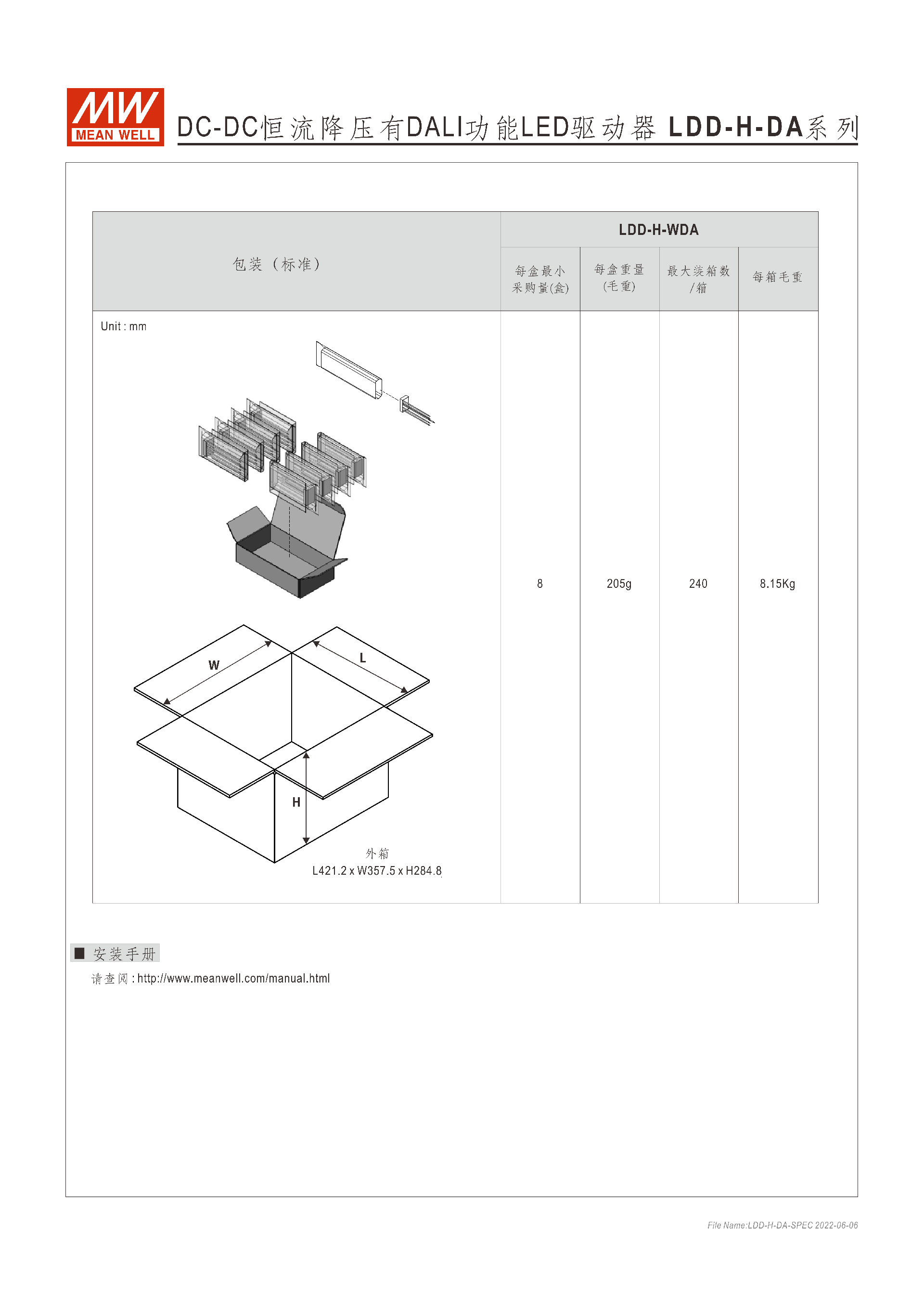 本文檔為明緯LDD-H-DA 系列DC-DC 恒流降壓帶 DALI 功能 LED 驅(qū)動器的技術(shù)規(guī)格書,涵蓋產(chǎn)品核心特性、電氣參數(shù)、結(jié)構(gòu)腳位、環(huán)境要求、安規(guī)兼容、包裝及使用備注等全維度信息,以下為分點詳細總結(jié):