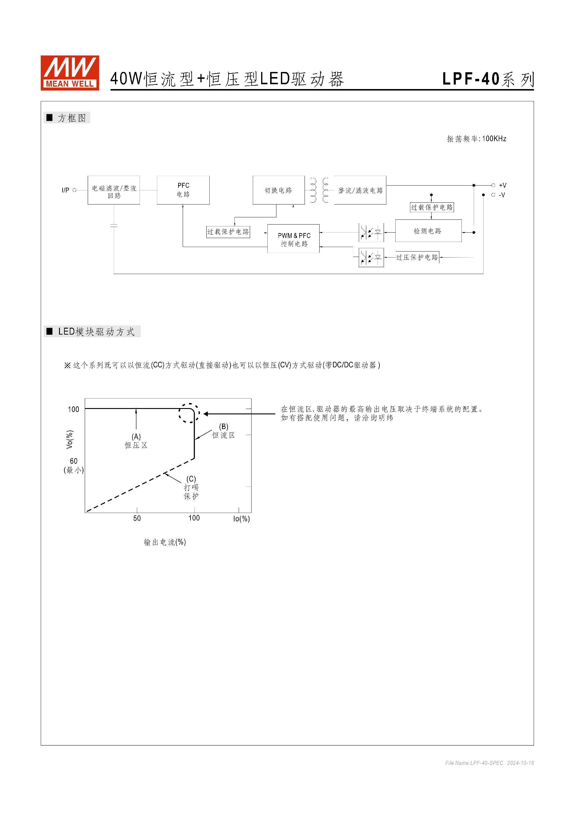 LPF-40 系列是明緯生產(chǎn)的40W 恒流 + 恒壓雙模式LED 交流變直流驅(qū)動(dòng)器,為 2012 年臺(tái)灣精品認(rèn)證產(chǎn)品,核心適用于各類 LED 照明場(chǎng)景,具備以下核心基礎(chǔ)特性: