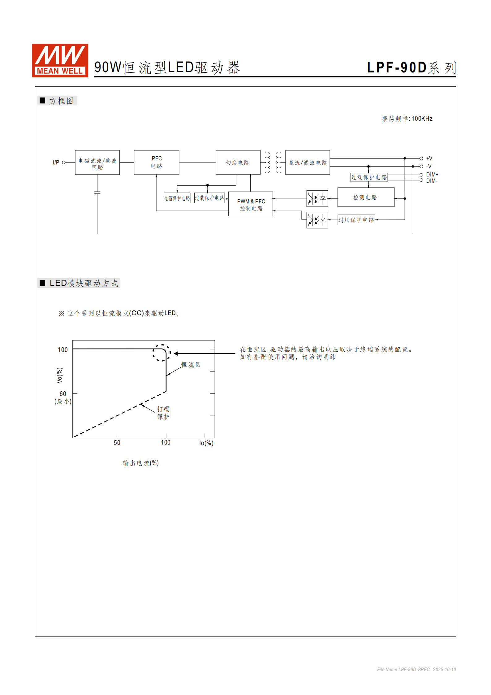 | LPF-90D-54 | 54V | 1.67A | 90.18W | 32.4~54V | 90.5% |