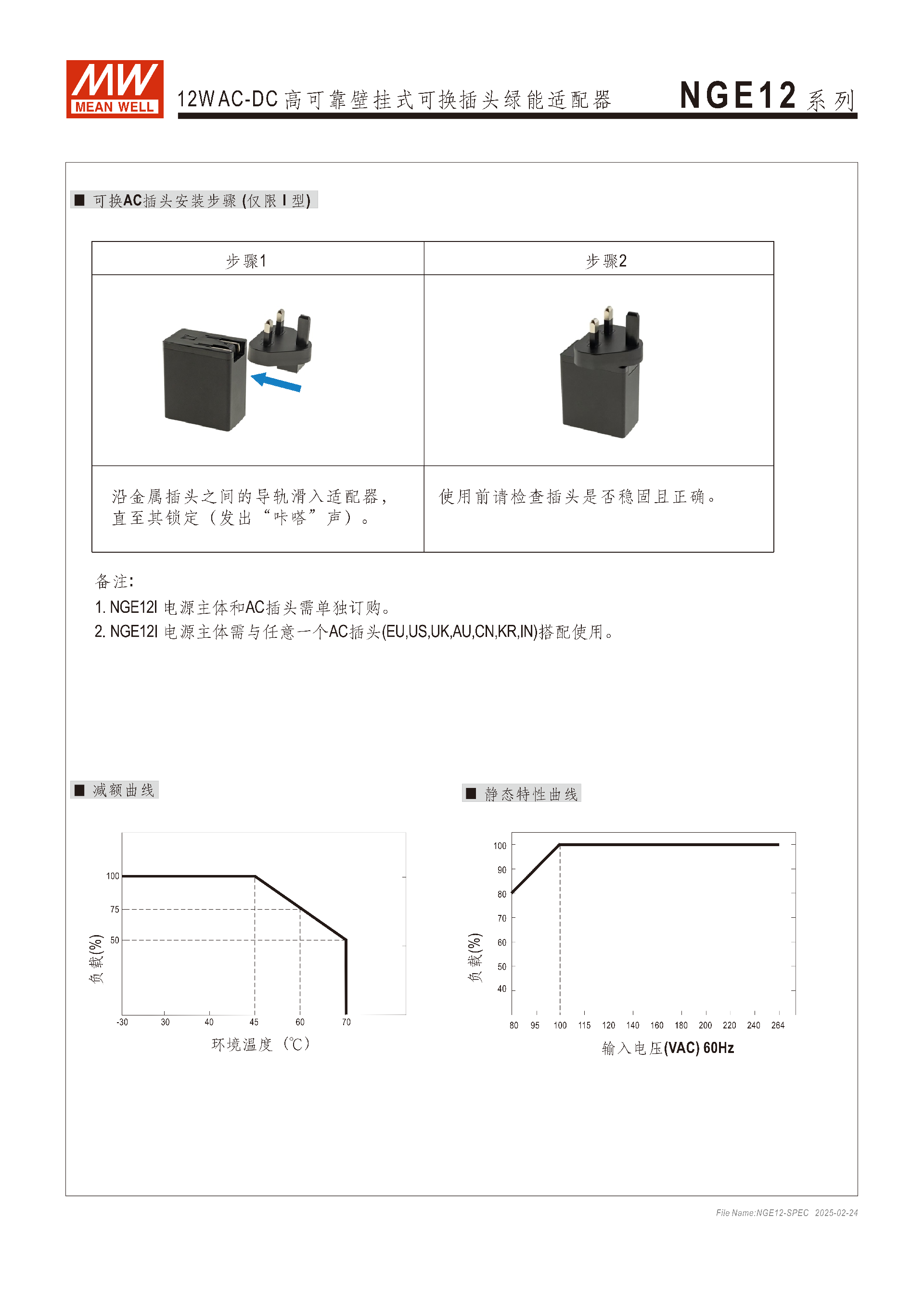 問題 2:NGE12 系列適配器的電氣核心參數(shù)有哪些,不同輸出電壓的功率與電流有何差異?(側(cè)重電氣規(guī)格)