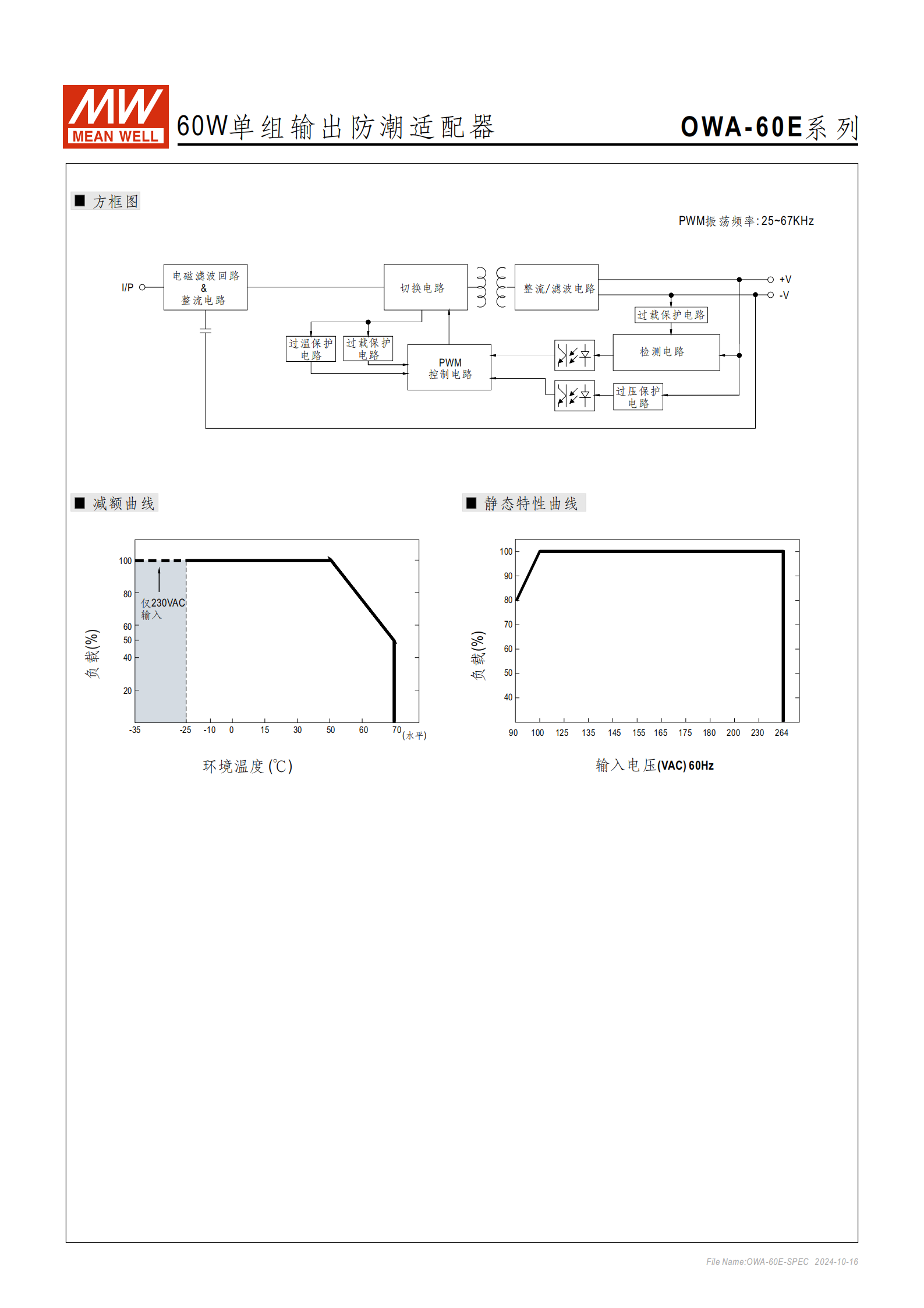| OWA-60E-36 | 36V | 1.67A | 60.12W | 250mVp-p | ±2.0% | 90% |