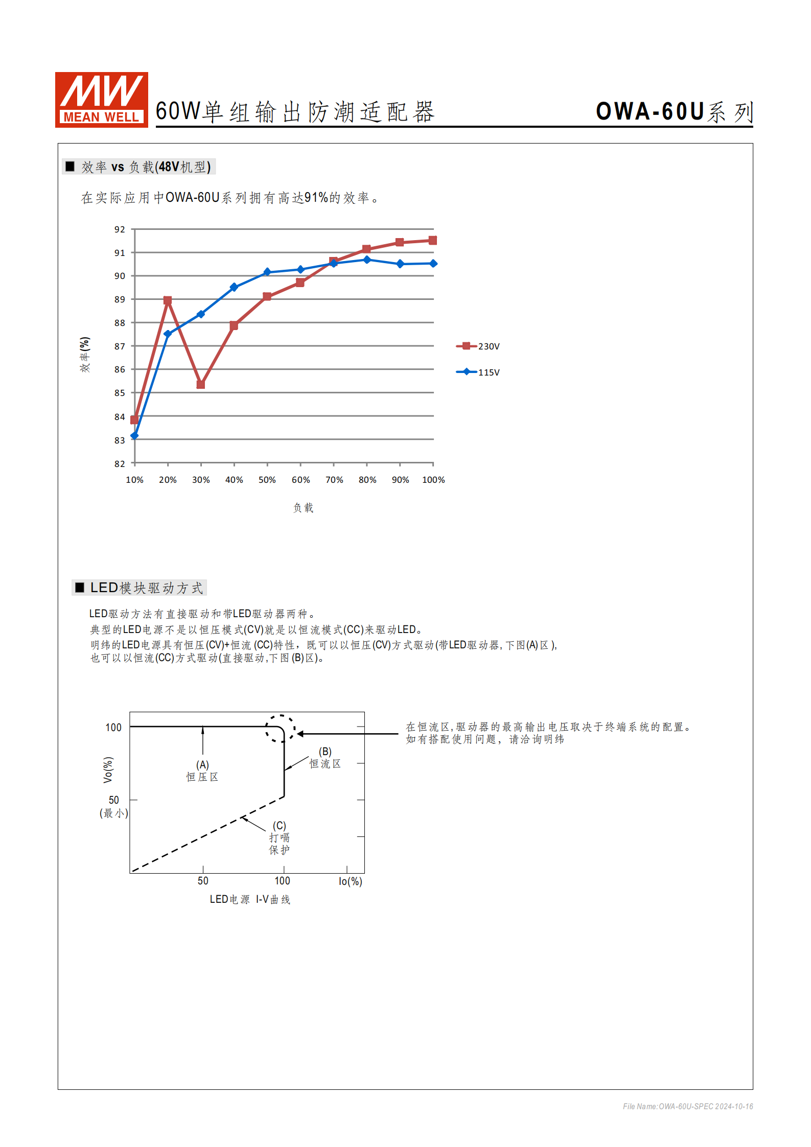 問(wèn)題 2(電氣性能):OWA-60U 系列的恒壓 + 恒流雙驅(qū)動(dòng)特性具體如何體現(xiàn),適配哪種 LED 驅(qū)動(dòng)方式?