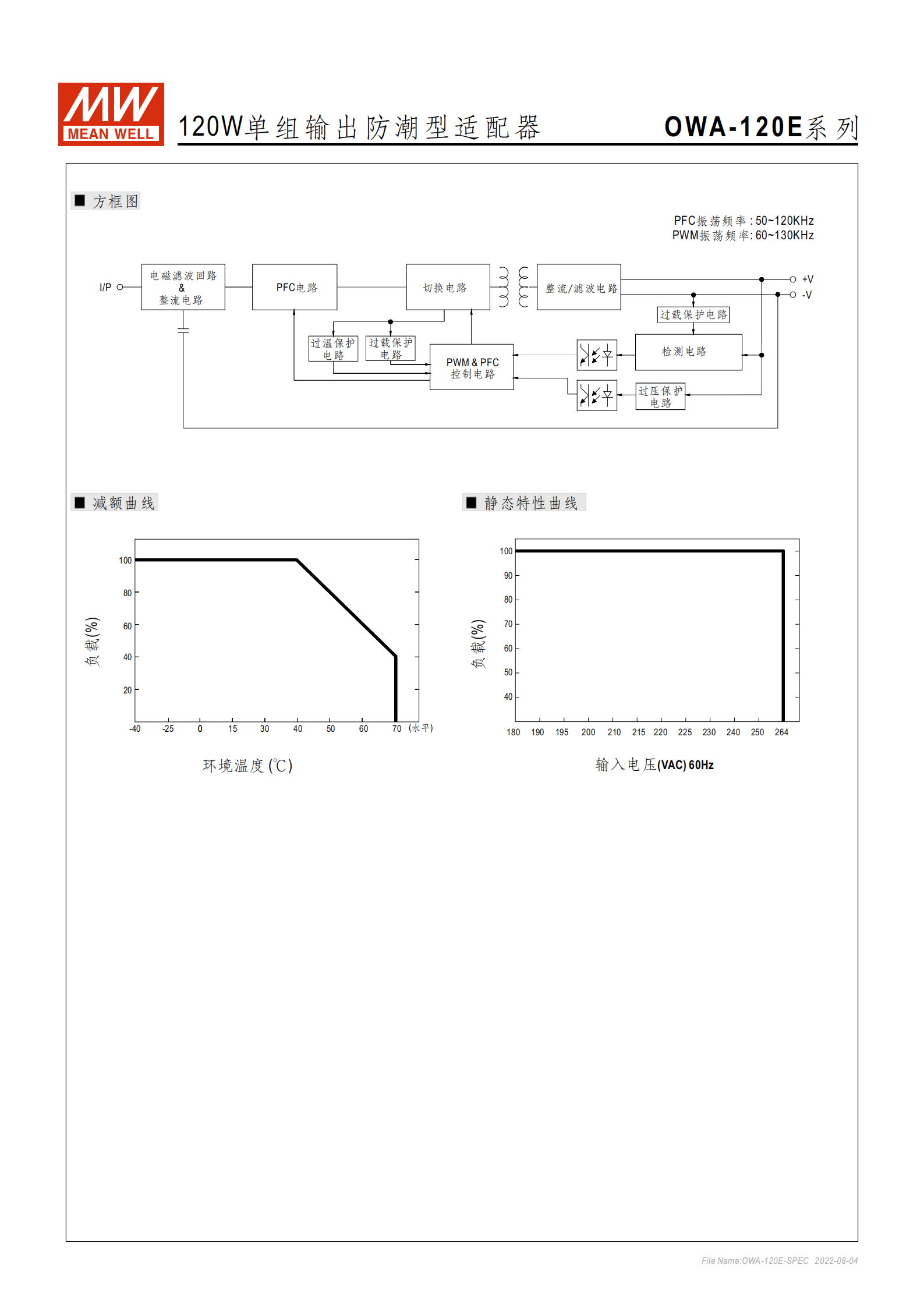 | OWA-120E-48 | 48V | 2.5A | 120W | 250mVp-p | ±1.0% | 90.5% |