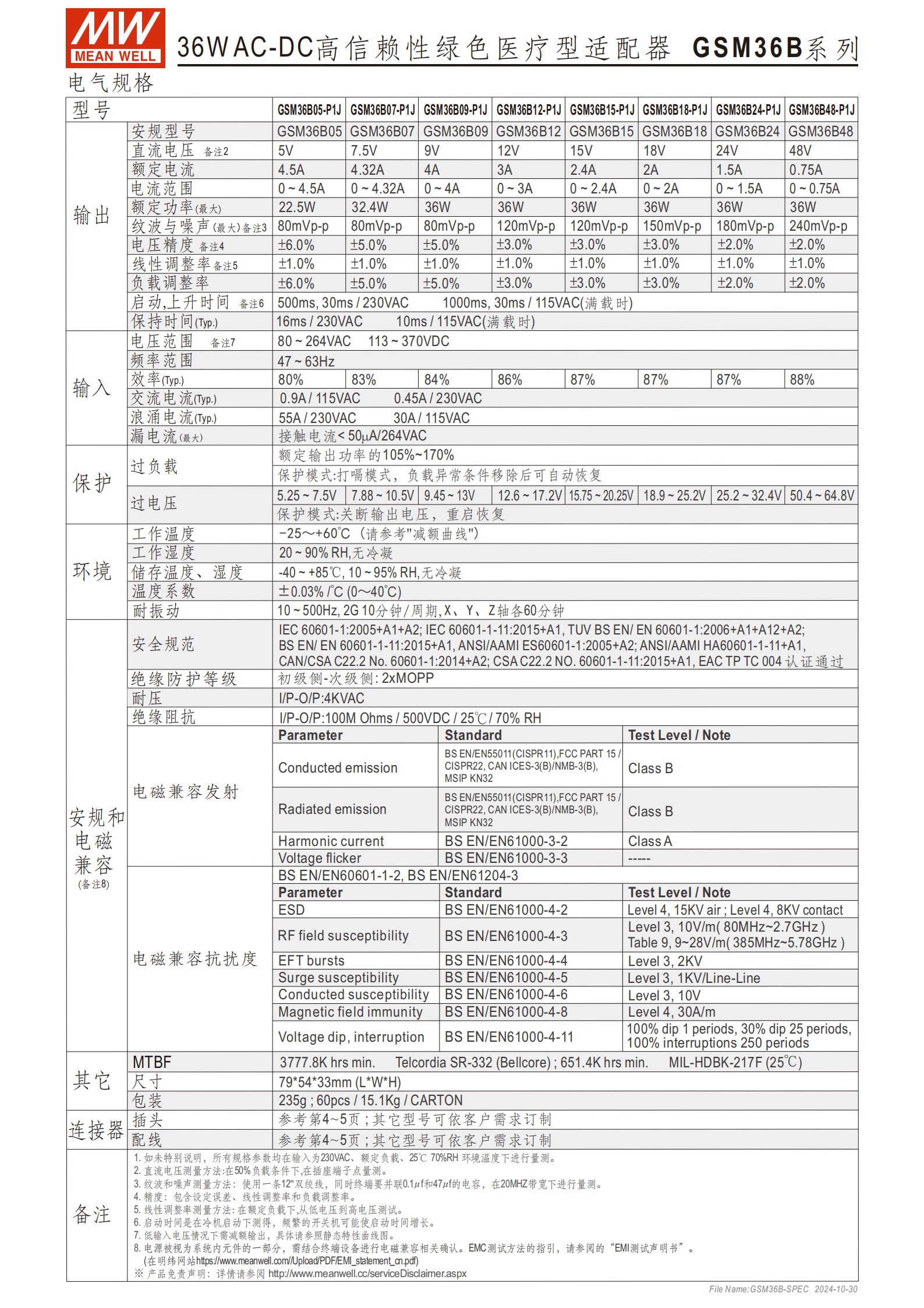 | GSM36B07-P1J | 7.5V | 4.32A | 32.4W | 80mVp-p | ±5.0% | 83% |
