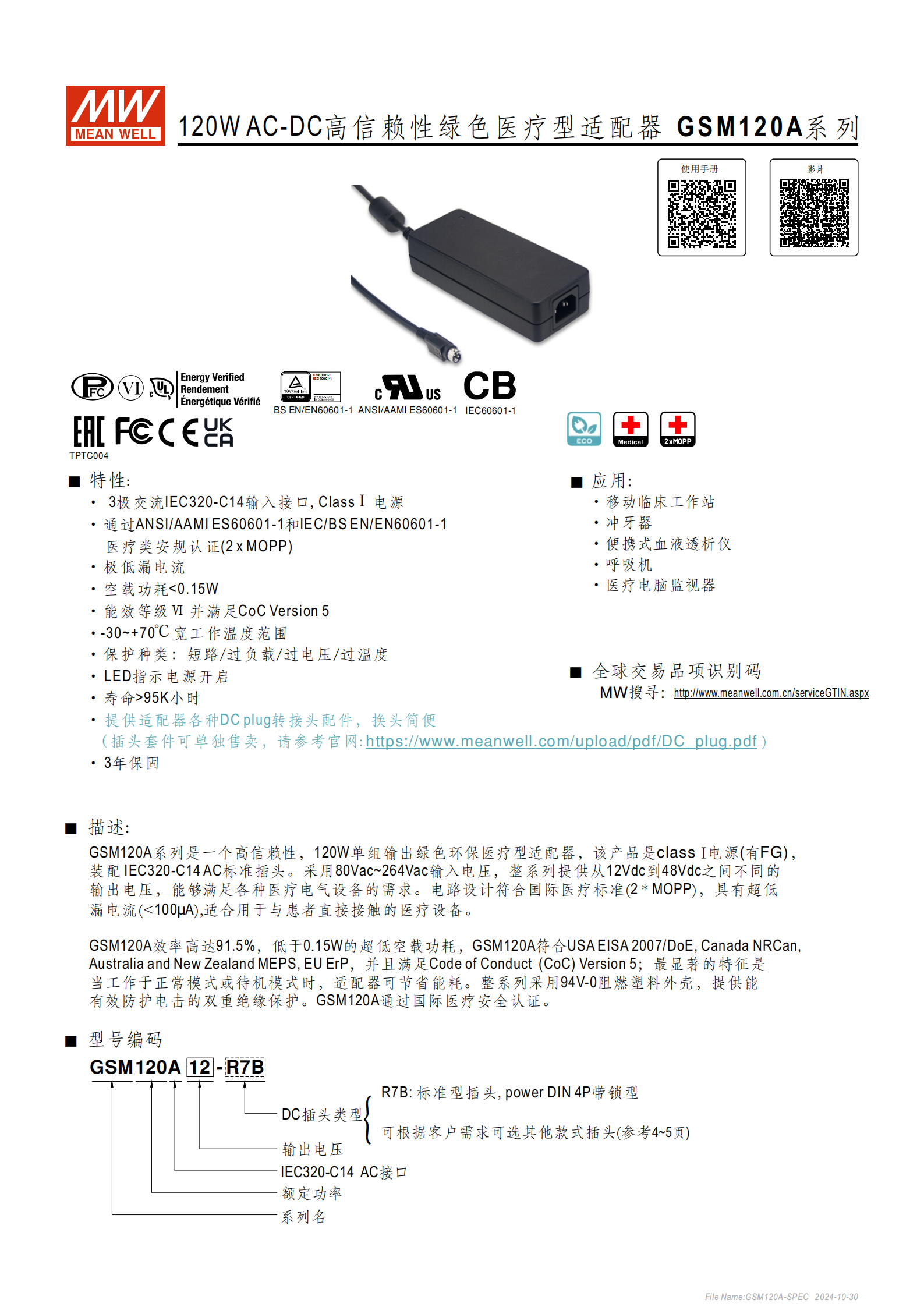 問(wèn)題 1(性能與安全):GSM120A 系列適配器的醫(yī)療安全核心指標(biāo)有哪些,為何適配與患者直接接觸的醫(yī)療設(shè)備?