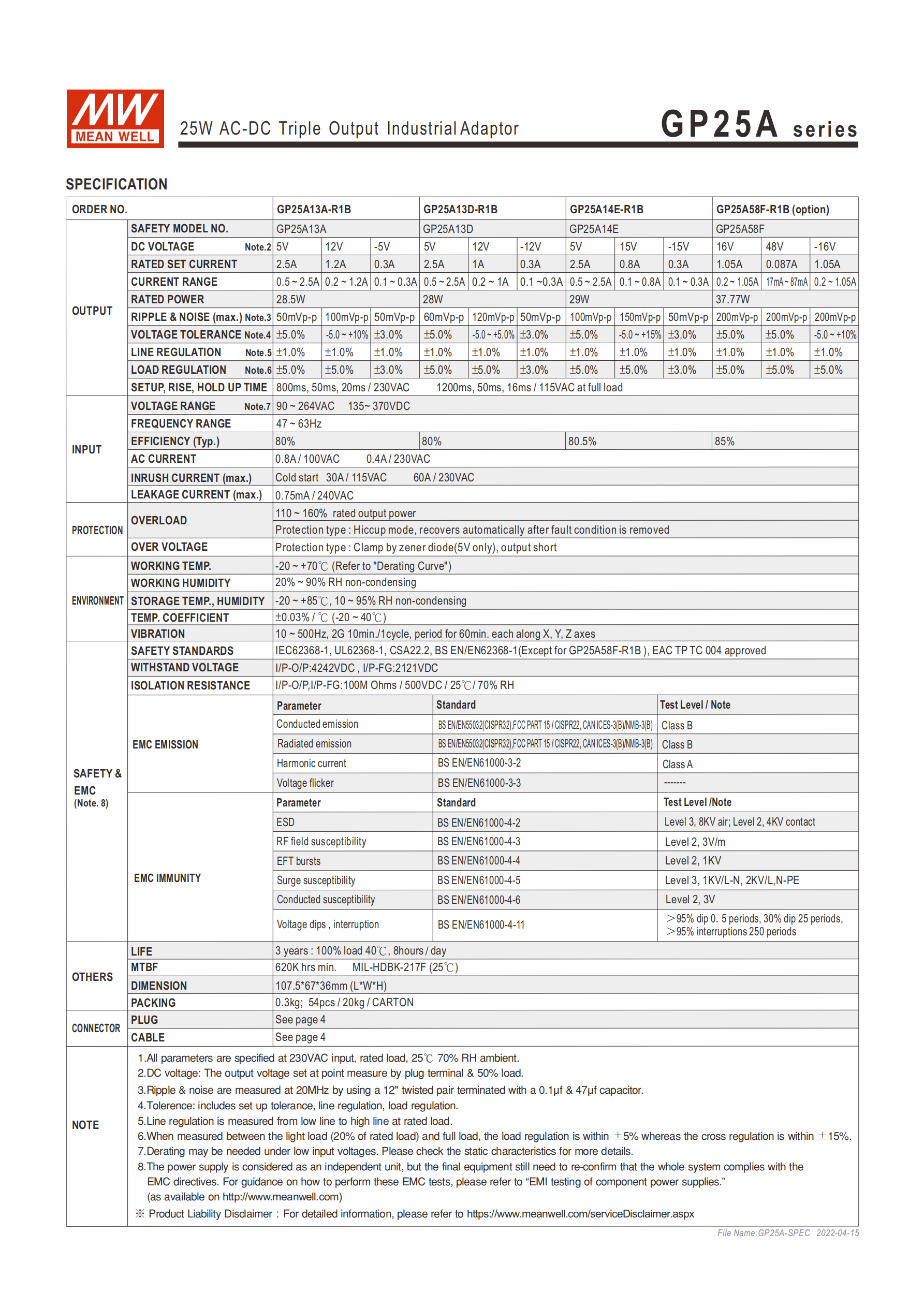 | GP25B14E-R1B | +5V/+15V/-15V | 2.5A/0.8A/0.3A | 29W | 50/50/50mVp-p | ±5.0% |
