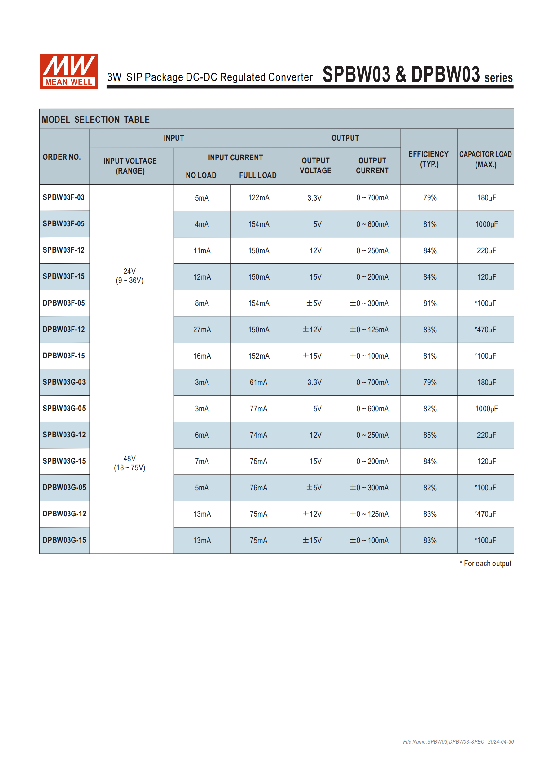 問題 1(產(chǎn)品選型類):SPBW03&DPBW03 系列按輸入電壓和輸出類型可分為哪些核心系列,各支持的輸出電壓有哪些?