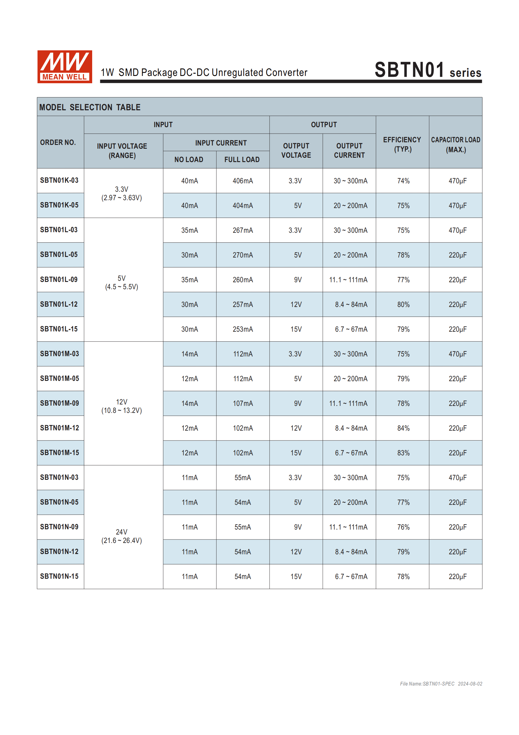 DETN02(系列名 + 額定功率)+L/M/N(輸入電壓)+05/12/15(輸出電壓)+N(新系列);輸入電壓:L=4.5~5.5Vdc、M=10.8~13.2Vdc、N=21.6~26.4Vdc;