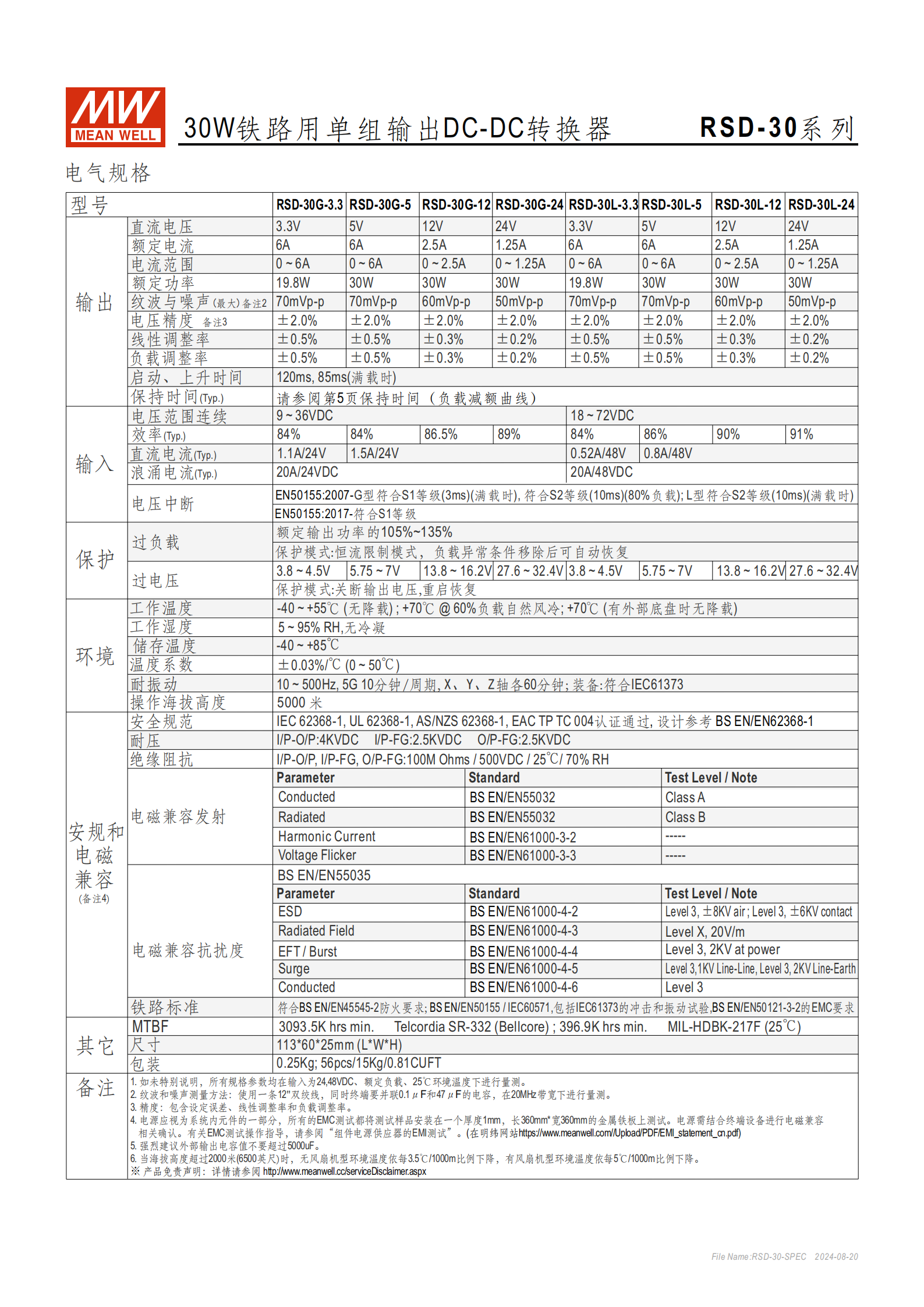 RSD-30 系列為明緯研發(fā)的30W 封閉型鐵路專用單組輸出 DC-DC 轉(zhuǎn)換器,主打軌道交通及惡劣環(huán)境應用,采用灌半膠、1U 外型設(shè)計,高度僅 25mm,自然風冷散熱,無最小負載要求,提供3 年保固,單臺重量 0.25Kg,包裝規(guī)格 56pcs/15Kg/0.81CUFT,全球交易品項識別碼可通過明緯官網(wǎng)查詢。