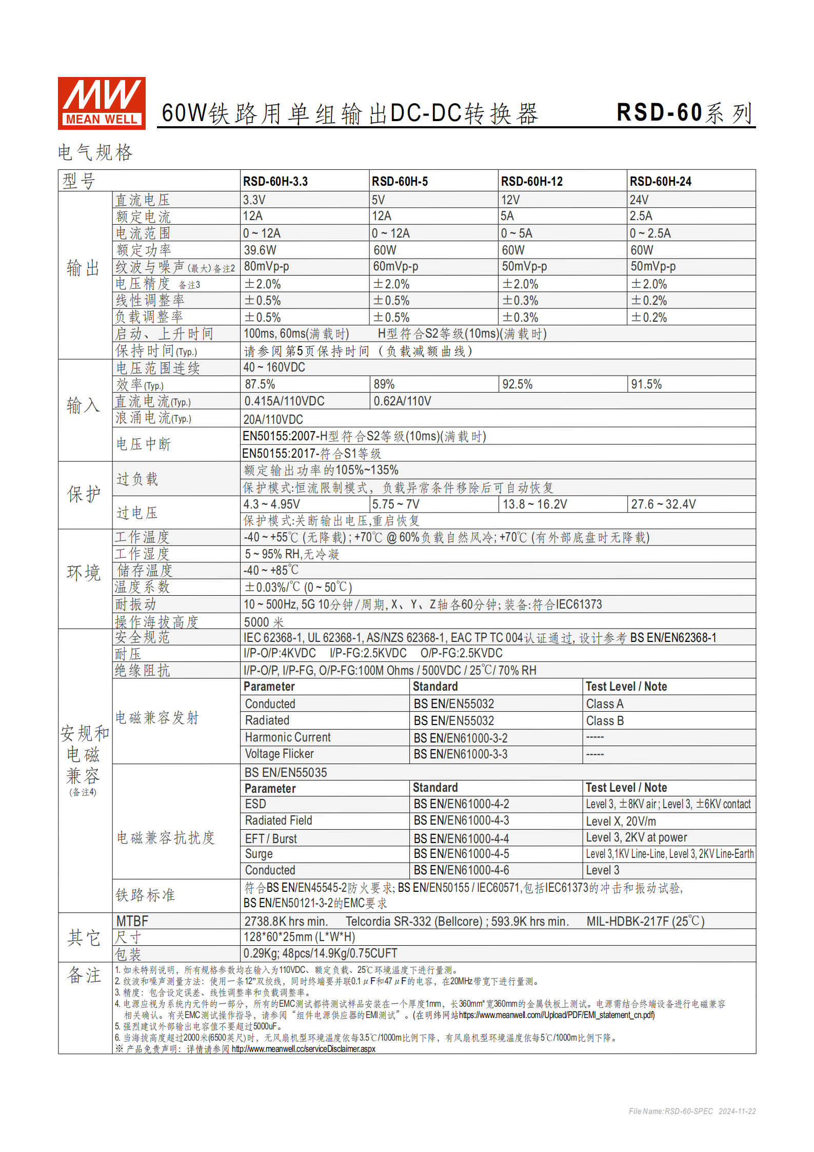RSD-60 系列分G/L/H 三大類,共 12 個具體型號,核心區(qū)分在于輸入電壓范圍,每類均提供 3.3V/5V/12V/24V 四種輸出電壓選擇,以下是全型號清單及對應(yīng)核心參數(shù),所有參數(shù)均為標(biāo)準(zhǔn)值(無特殊說明時,輸入 24/48VDC、額定負(fù)載、25℃環(huán)境下測量):