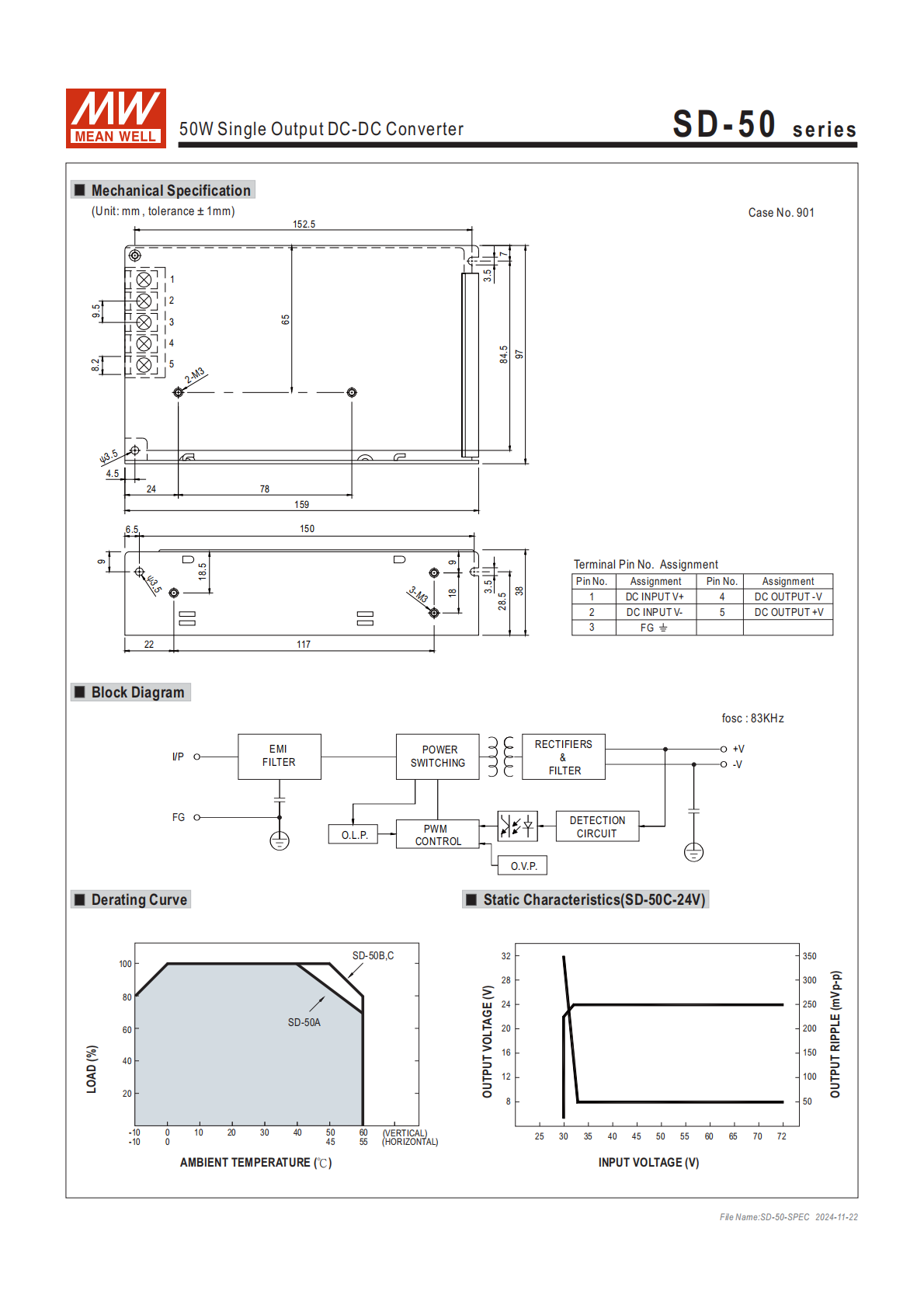 • SD-50:代表 50W 單組輸出 DC-DC 轉(zhuǎn)換器系列;