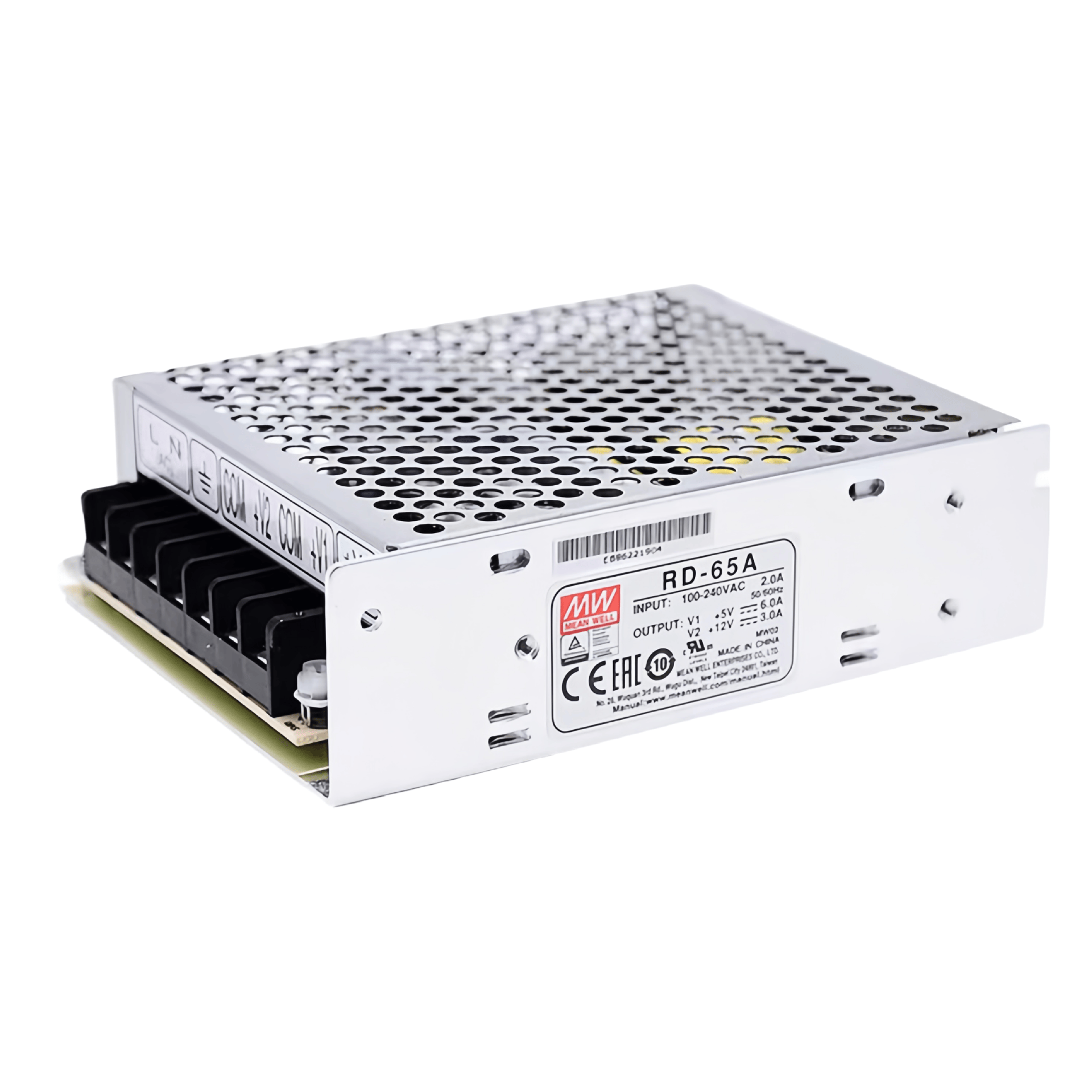 RD-65 系列是一款65W 雙組輸出開(kāi)關(guān)電源,包含RD-65A(5V/6A+12V/3A,總功率 66W) 和RD-65B(5V/4A+24V/2A,總功率 68W) 兩個(gè)型號(hào),具備88~264Vac/125~373Vdc 國(guó)際通用寬電壓輸入,核心優(yōu)勢(shì)包括短路 / 過(guò)負(fù)載 / 過(guò)電壓三重保護(hù)(打嗝模式)、70℃高溫工作、5G 抗振動(dòng)、105℃長(zhǎng)壽命電解電容、3 年保固,效率達(dá)77%~78% ,尺寸為1299838mm,通過(guò) UL62368-1 等多項(xiàng)國(guó)際安全認(rèn)證,適配需雙組不同電壓供電的中功率電子設(shè)備與工業(yè)模塊,可靠性突出。