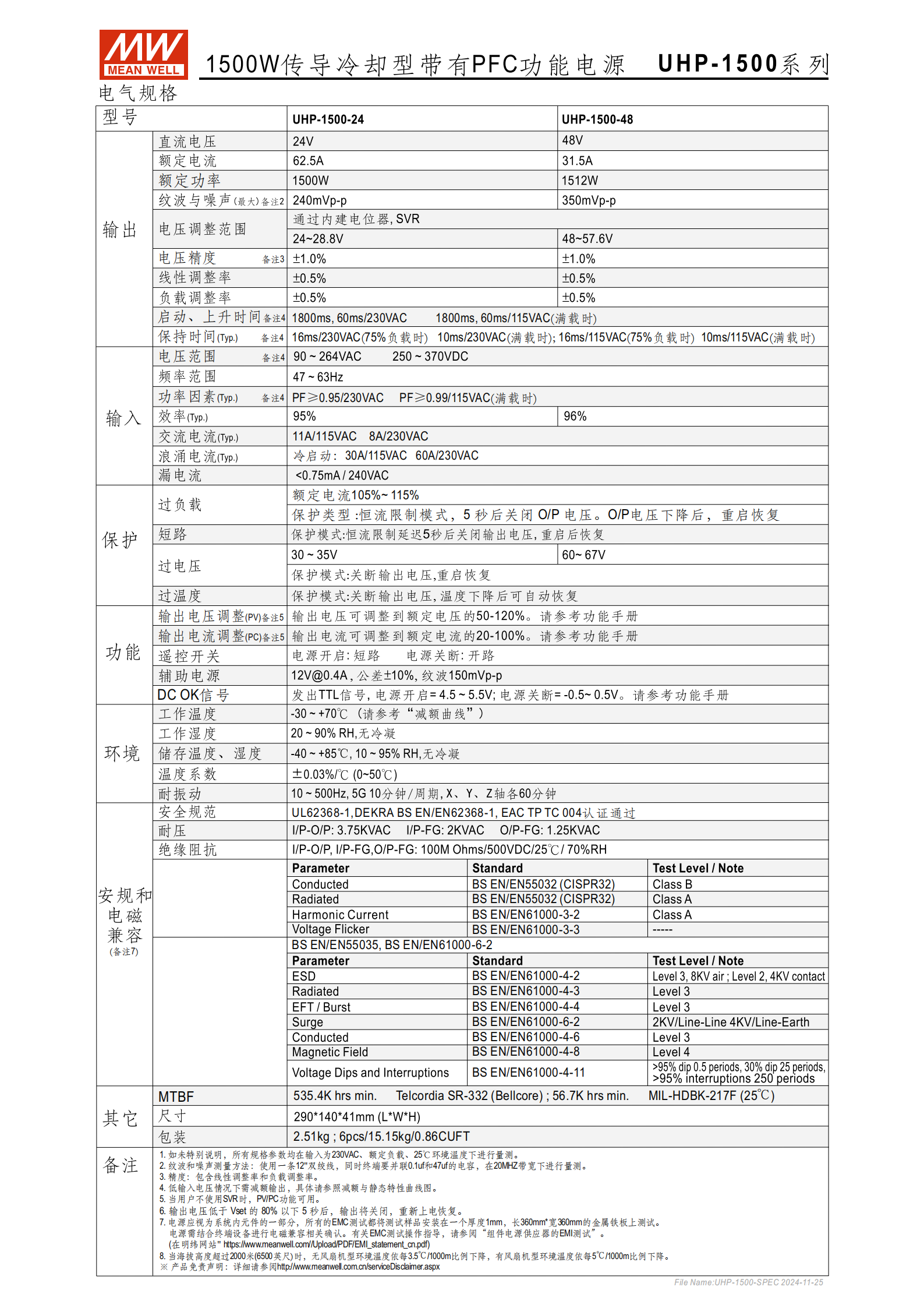 品牌型號:MEAN WELL(明緯)UHP-1500 系列