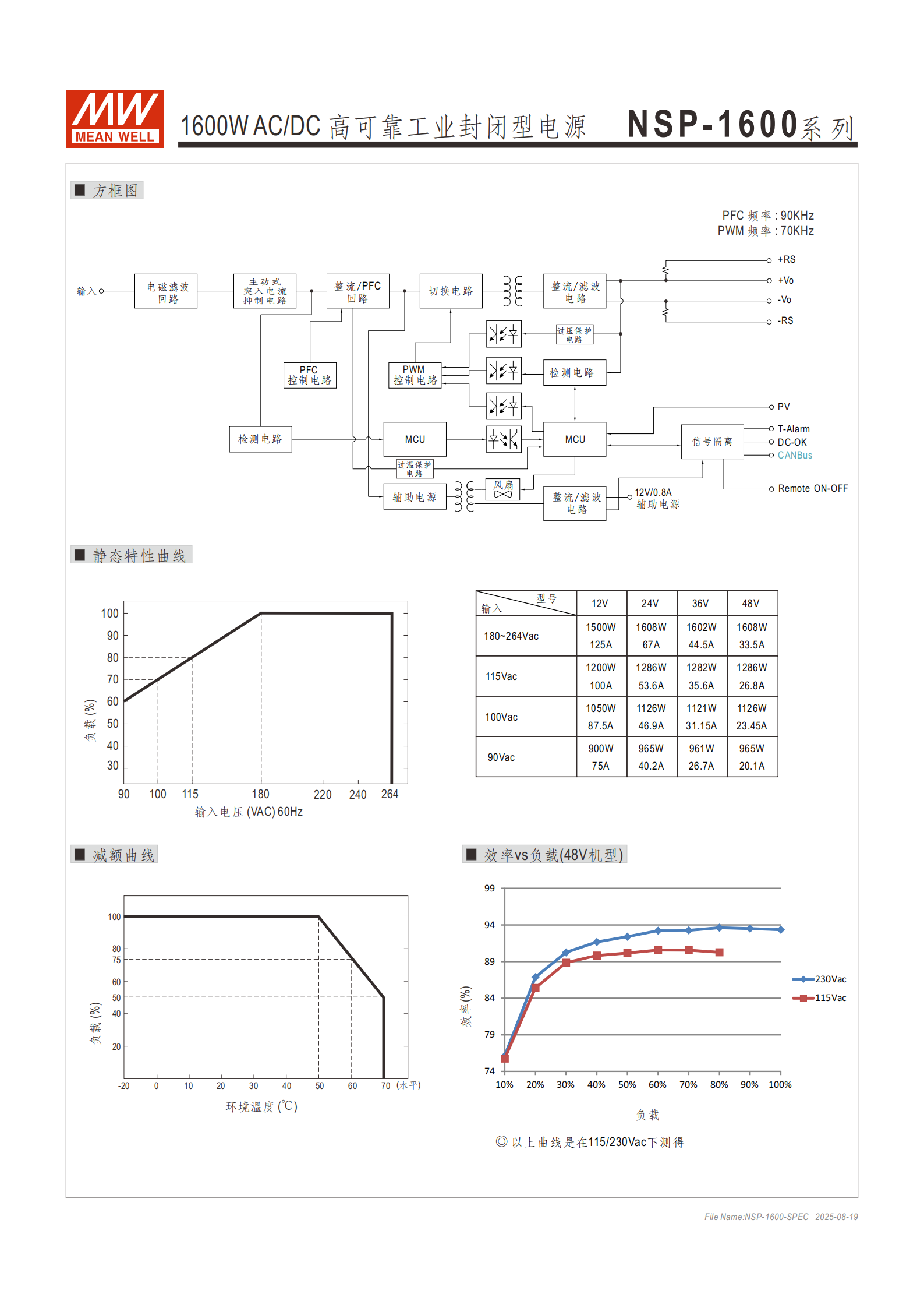 問題 1:NSP-1600 系列電源的核心輸出規(guī)格(電壓、電流、效率)及調(diào)節(jié)范圍是什么?
