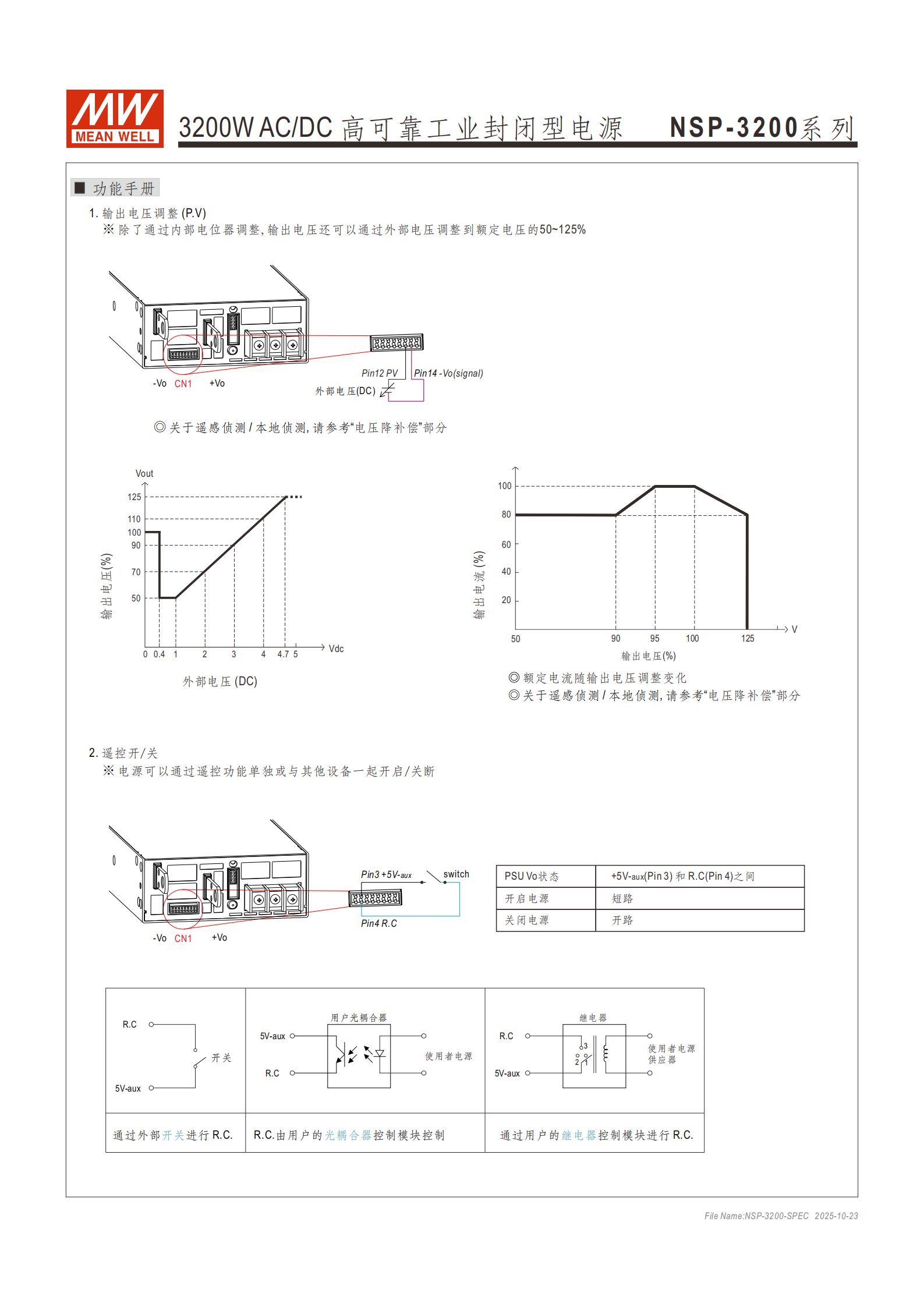 問題 1:NSP-3200 系列電源的輸出電壓調(diào)整范圍和控制方式是什么?適用于哪些需要靈活調(diào)節(jié)電壓的場景?