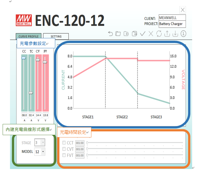 【可彈性設(shè)定三段式充電模式:CC/CV/float】