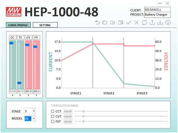 圖三 HEP-1000-48 三段式充電軟件接口